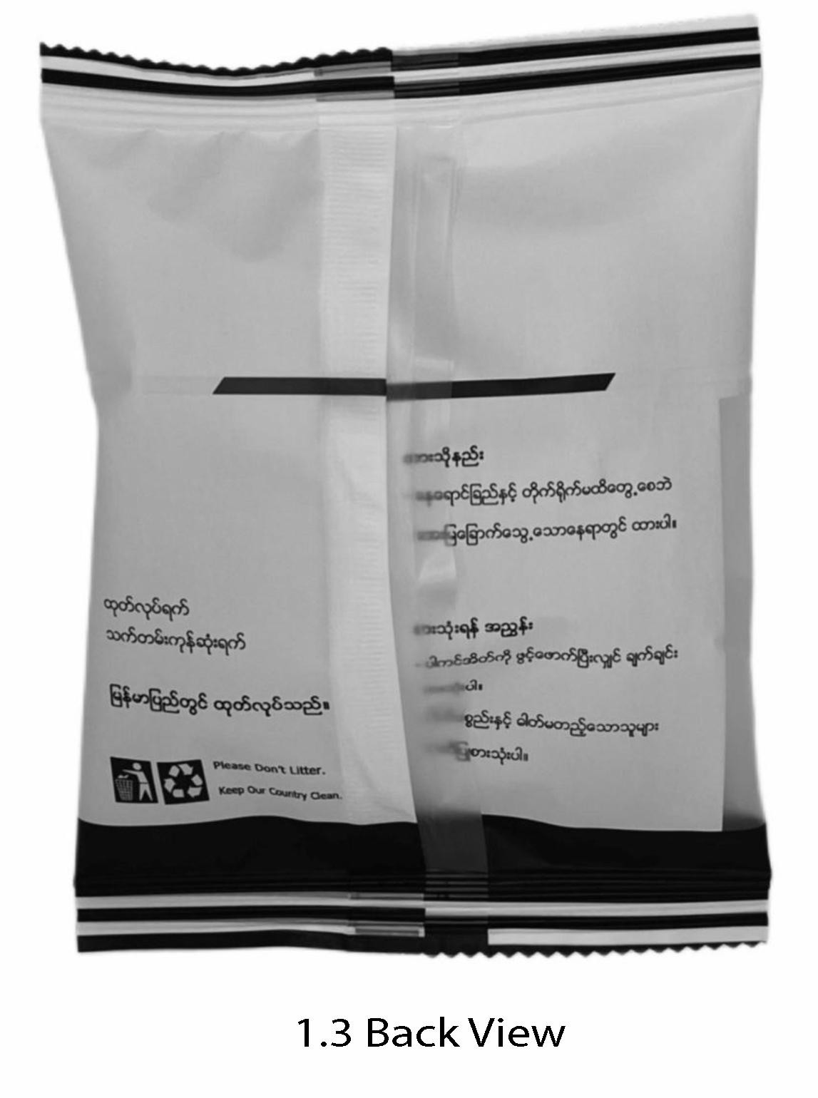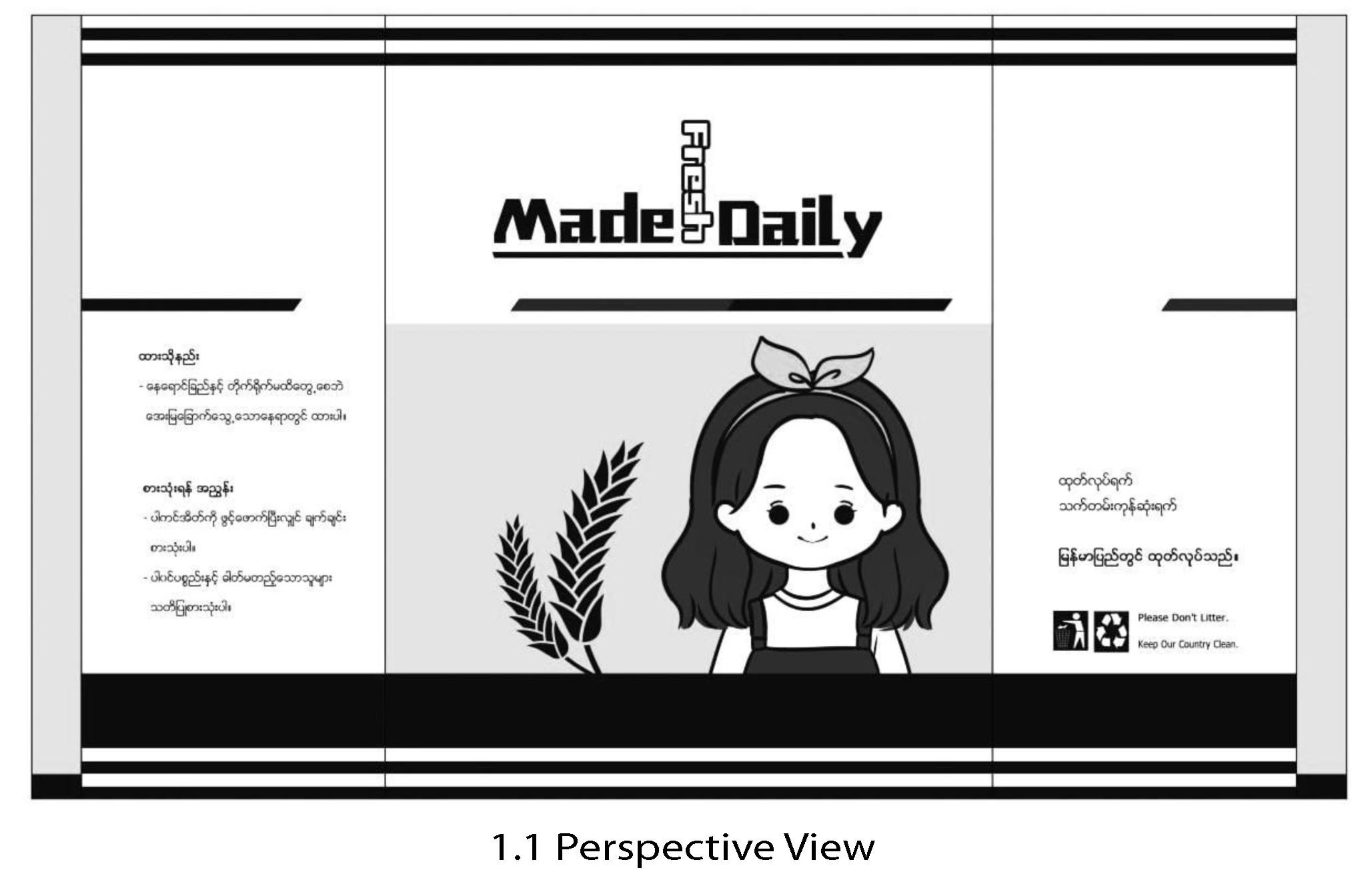မုန့်များထုတ်ပိုးရာတွင်အသုံးပြုသည့် Bag (Packaging) အား စက်မှုဒီဇိုင်းမူပိုင်ခွင့် လျှောက်ထားခြင်းဖြစ်ပါသည်။ လျှောက်ထားသည့် စက်မှုဒီဇိုင်းတွင်ပါရှိသော စကားလုံးများ၊ စာသားများ၊ သင်္ကေတများကို တစ်ဦးတည်းအသုံးပြုမှုနှင့်စပ်လျဉ်းသည့် အခွင့်အရေးနှင့် သက်ဆိုင်မှုမရှိကြောင်း တင်ပြအပ်ပါသည်။