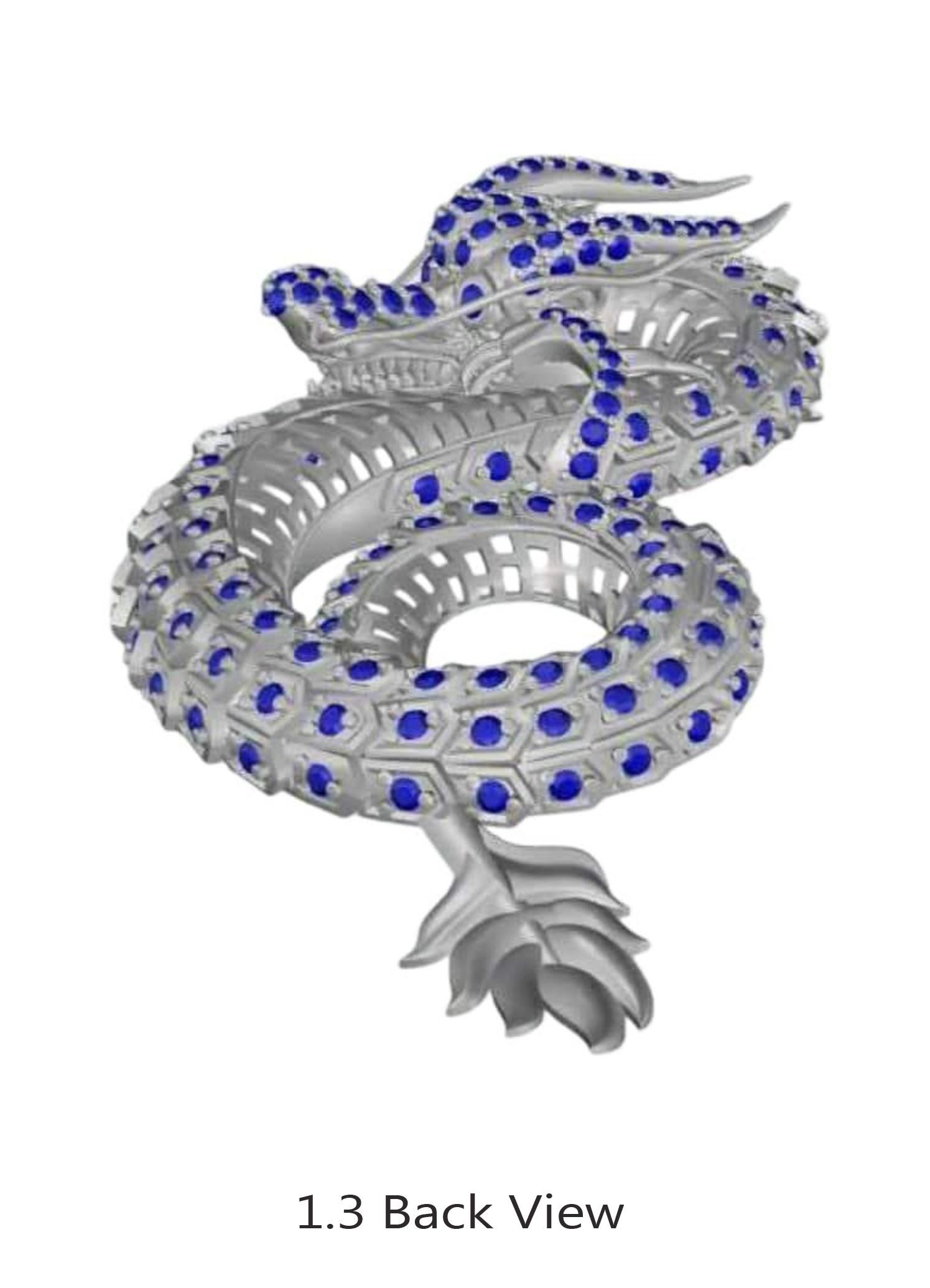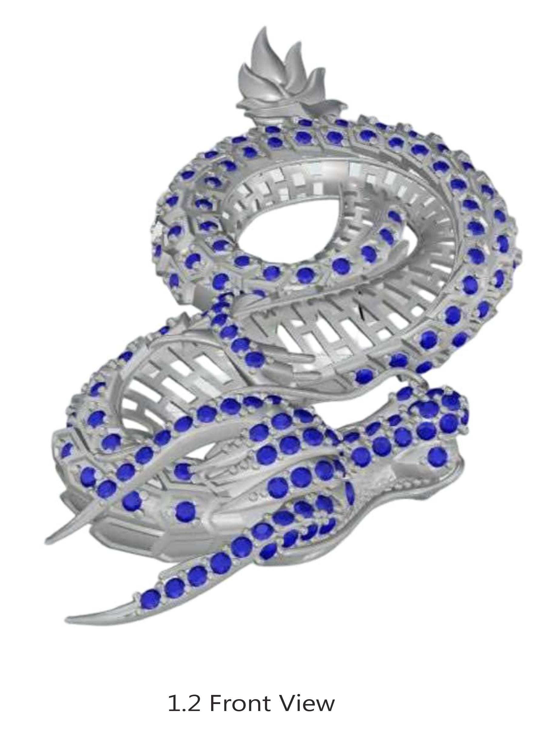 ဤဒီဇိုင်းမှာ ဂျိုနဂါး ပုံသဏ္ဍာန် ပြုလုပ်ဖန်တီးထားသော ဆွဲသီးရင်ထိုးဖြစ်ပါသည်။