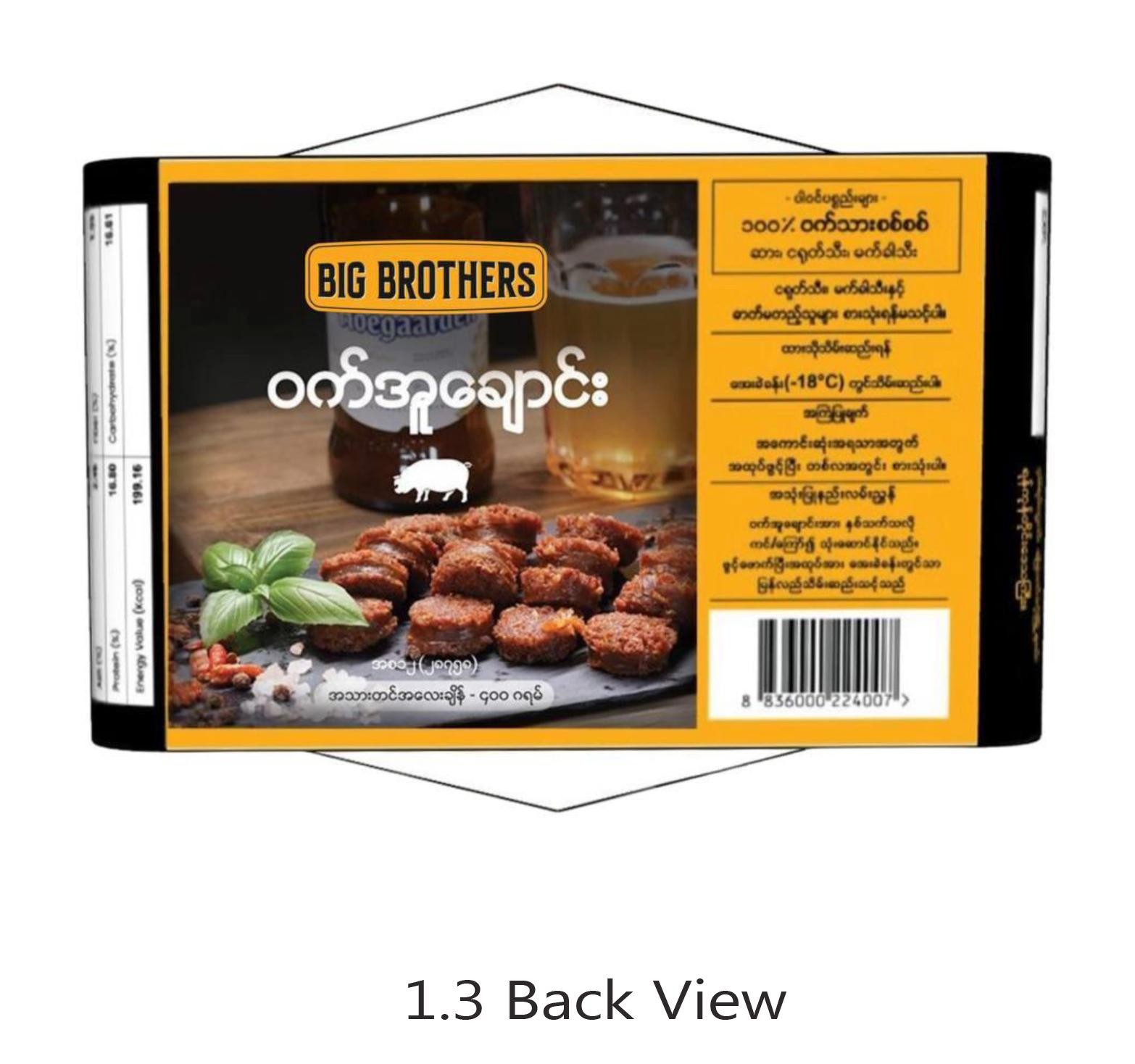 Packing Label ဒီဇိုင်းကို လျှောက်ထားခြင်းဖြစ်ပါသည်။ ဒီဇိုင်းတွင် ပါရှိသည့် စကားလုံးများ၊ စာသားများ၊ ကိန်းဂဏန်းများ၊ သင်္ကေတများ၊ ဘားကုတ်နှင့် ရုပ်ပုံများကို တစ်ဦးတည်း အသုံးပြုမှုနှင့် စပ်လျဉ်းသည့် အခွင့်အရေးနှင့် သက်ဆိုင်မှုမရှိကြောင်း တင်ပြအပ်ပါသည်။