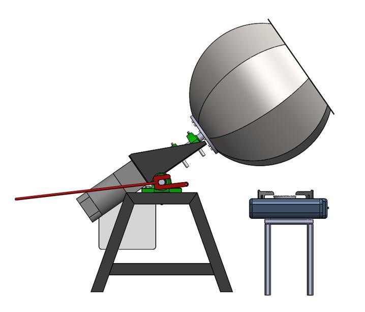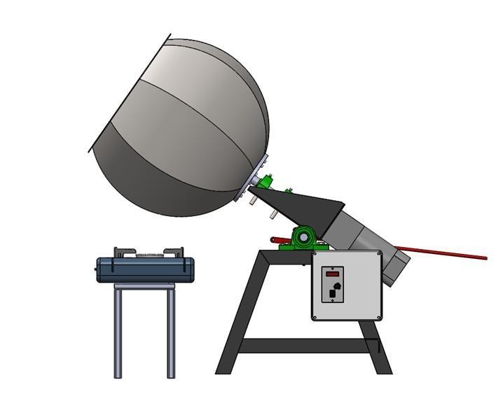 (IN) Mesin pencampur bumbu marning jagung dirancang untuk meningkatkan efisiensi dan konsistensi dalam proses pencampuran bumbu pada marning. Desainnya menggunakan sistem drum berputar horizontal dari stainless steel food grade yang digerakkan oleh motor listrik berdaya rendah dengan gearbox reduksi. Prinsip kerjanya sederhana: bahan marning dan bumbu dimasukkan ke dalam drum, kemudian drum berputar dengan kecepatan rendah (±20–40 rpm) untuk menghasilkan pencampuran yang merata tanpa merusak tekstur jagung. Setelah proses selesai, drum dapat dimiringkan untuk memudahkan pengosongan hasil campuran. Struktur mesin terdiri dari rangka utama, drum, motor listrik, dan tuas penggerak. Keunggulan utamanya adalah hasil campuran yang homogen, waktu proses singkat (3–5 menit per batch), serta tingkat higienitas tinggi karena minim kontak tangan. Desain ini juga dapat dilengkapi inovasi seperti pengatur kecepatan otomatis guna menyesuaikan konfigurasi pencampuran dengan karakteristik produk. Mesin ini sangat cocok untuk industri kecil hingga menengah yang memproduksi marning secara massal namun tetap menjaga kualitas rasa dan kebersihan produk. Mesin pencampur bumbu marning jagung berguna untuk mencampur bumbu kering maupun cair secara merata pada produk marning, sehingga menghasilkan cita rasa yang konsisten dan berkualitas tinggi. Penggunaan mesin ini membantu mempercepat proses produksi dibandingkan pencampuran manual, menghemat tenaga kerja, serta menjaga kebersihan karena bahan tidak banyak bersentuhan dengan tangan. Mesin ini juga memastikan setiap butiran marning mendapatkan lapisan bumbu yang sama, sehingga rasa, aroma, dan warna lebih seragam. Selain itu, mesin dapat digunakan untuk berbagai jenis produk kering lainnya seperti keripik, kacang, atau snack ringan dengan prinsip kerja serupa. Dengan adanya fitur pengatur kecepatan dan kemiringan drum, pengguna dapat menyesuaikan intensitas pencampuran sesuai kebutuhan bahan, menjadikan mesin ini sangat berguna bagi pelaku usaha kecil hingga menengah dalam meningkatkan kapasitas produksi, efisiensi waktu, serta menjaga standar mutu produk secara berkelanjutan.