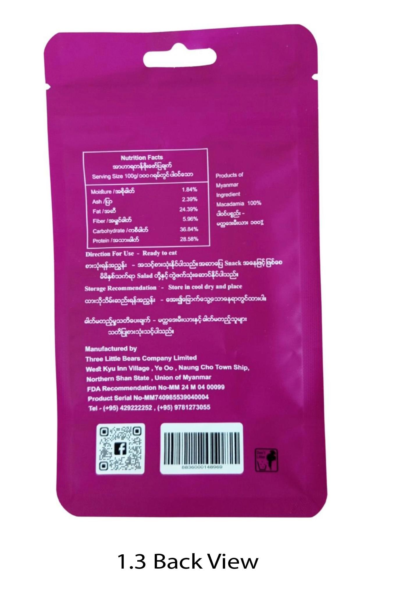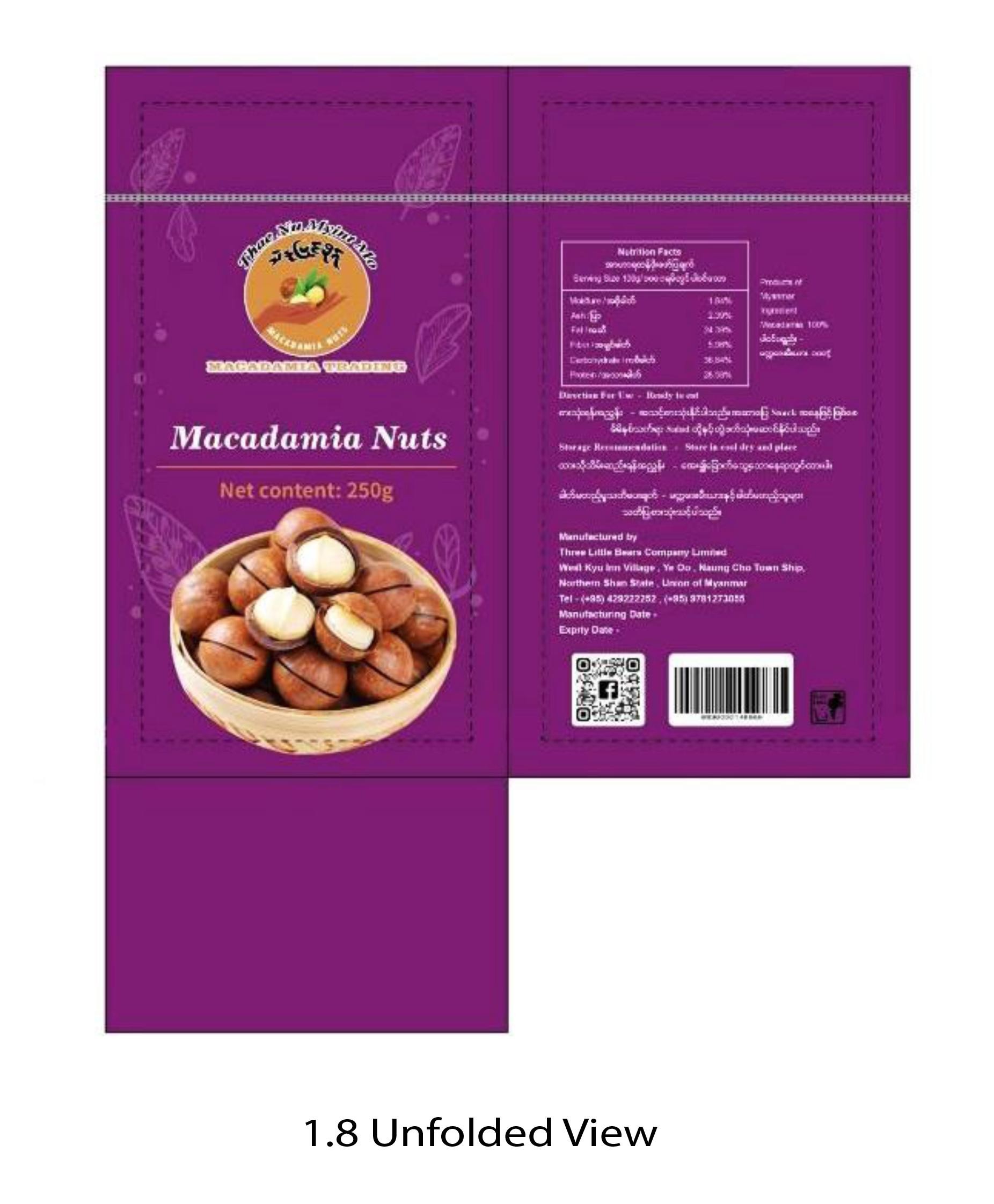 Macadamia Nuts ၏ထုပ်ပိုးမှုဒီဇိုင်းကို လျှောက်ထားခြင်းဖြစ်ပါသည်။ စက်မှုဒီဇိုင်းတွင်ပါရှိသော စကားလုံးများ၊ စာသားများ၊ ကိန်းဂဏန်းများ၊ သင်္ကေတများ၊ Barcode၊ QR Code များကို တစ်ဦးတည်းအသုံးပြုမှုနှင့်စပ်လျဉ်းသည့်အခွင့်အရေး တောင်းဆိုမှုမရှိကြောင်း တင်ပြအပ်ပါသည်။