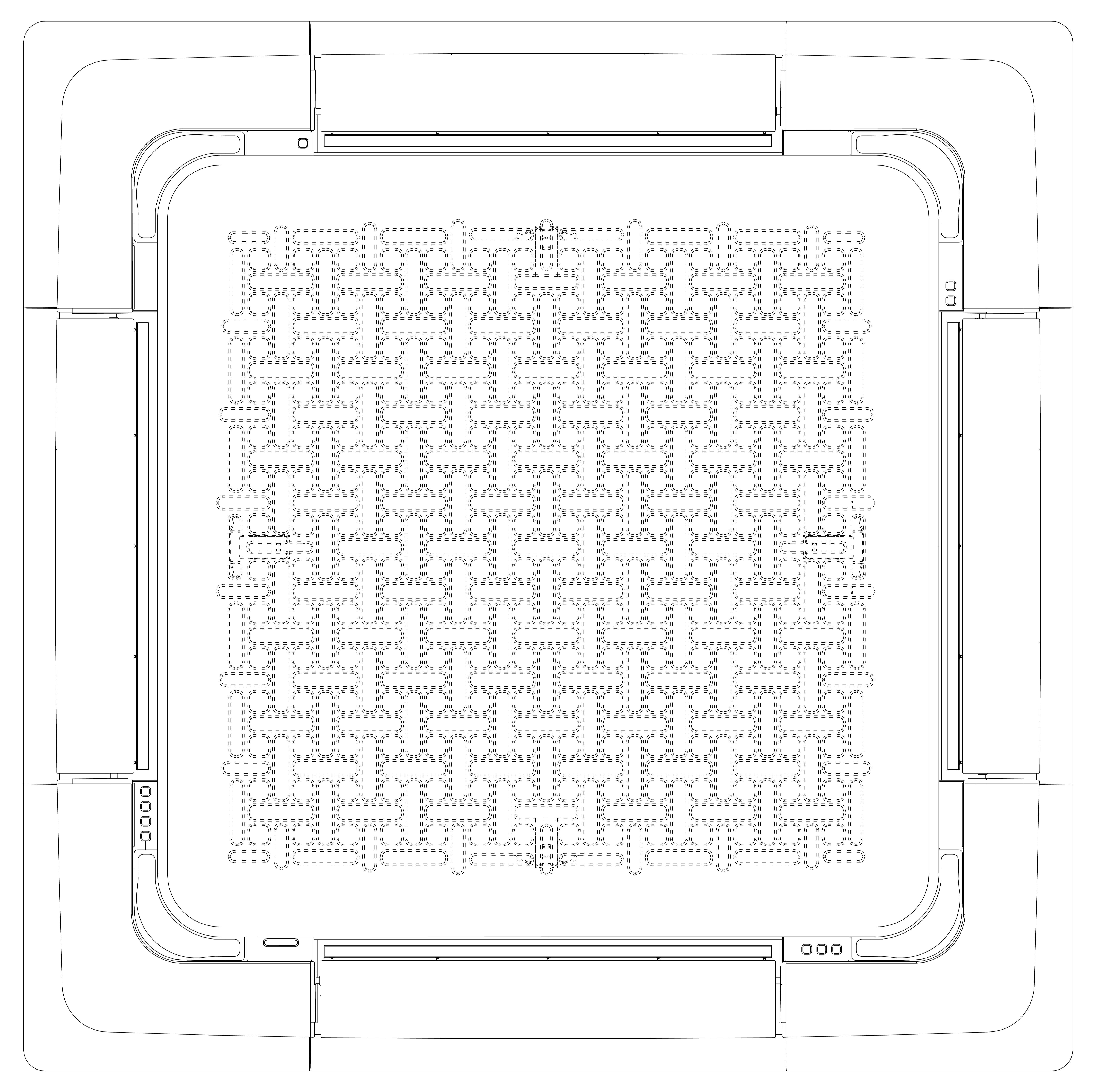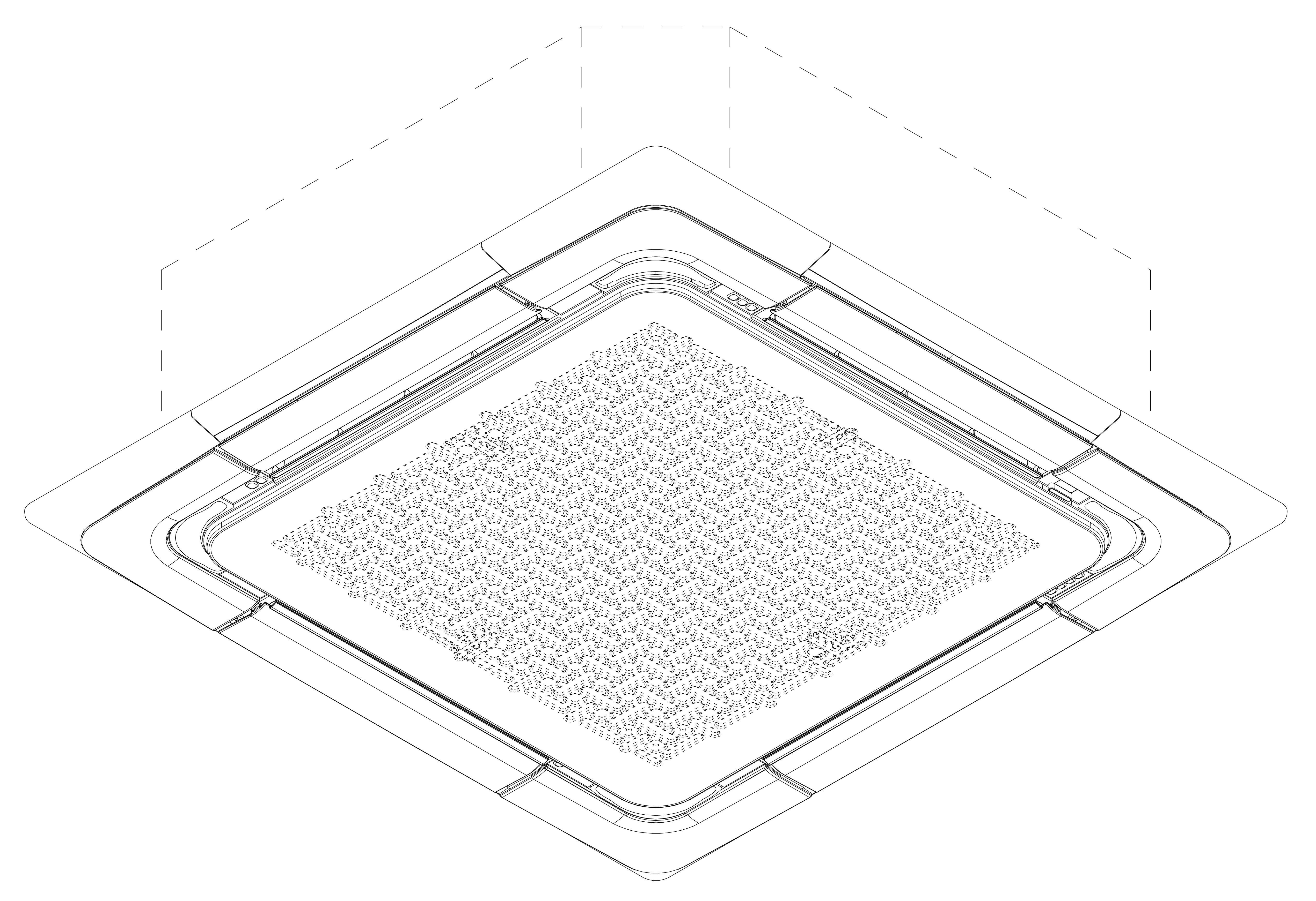 (IN) Desain ini digunakan sebagai pengatur suhu ruangan, pengatur tingkat kelembapan udara, serta menjadi penyaring kualitas udara pada suatu ruangan atau area. Garis putus-putus tidak termasuk dalam bagian yang di klaim (dimintakan perlindungannya).