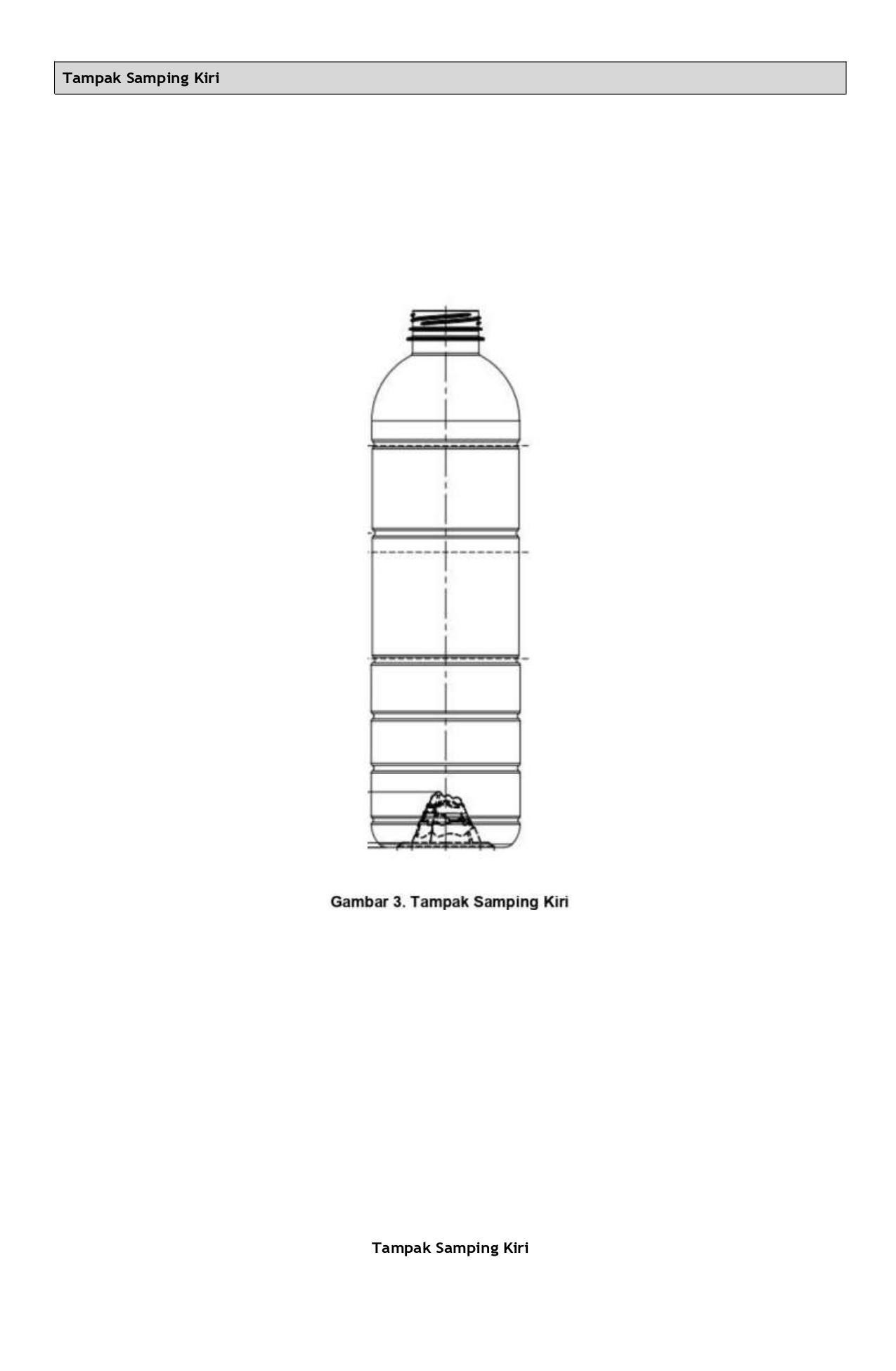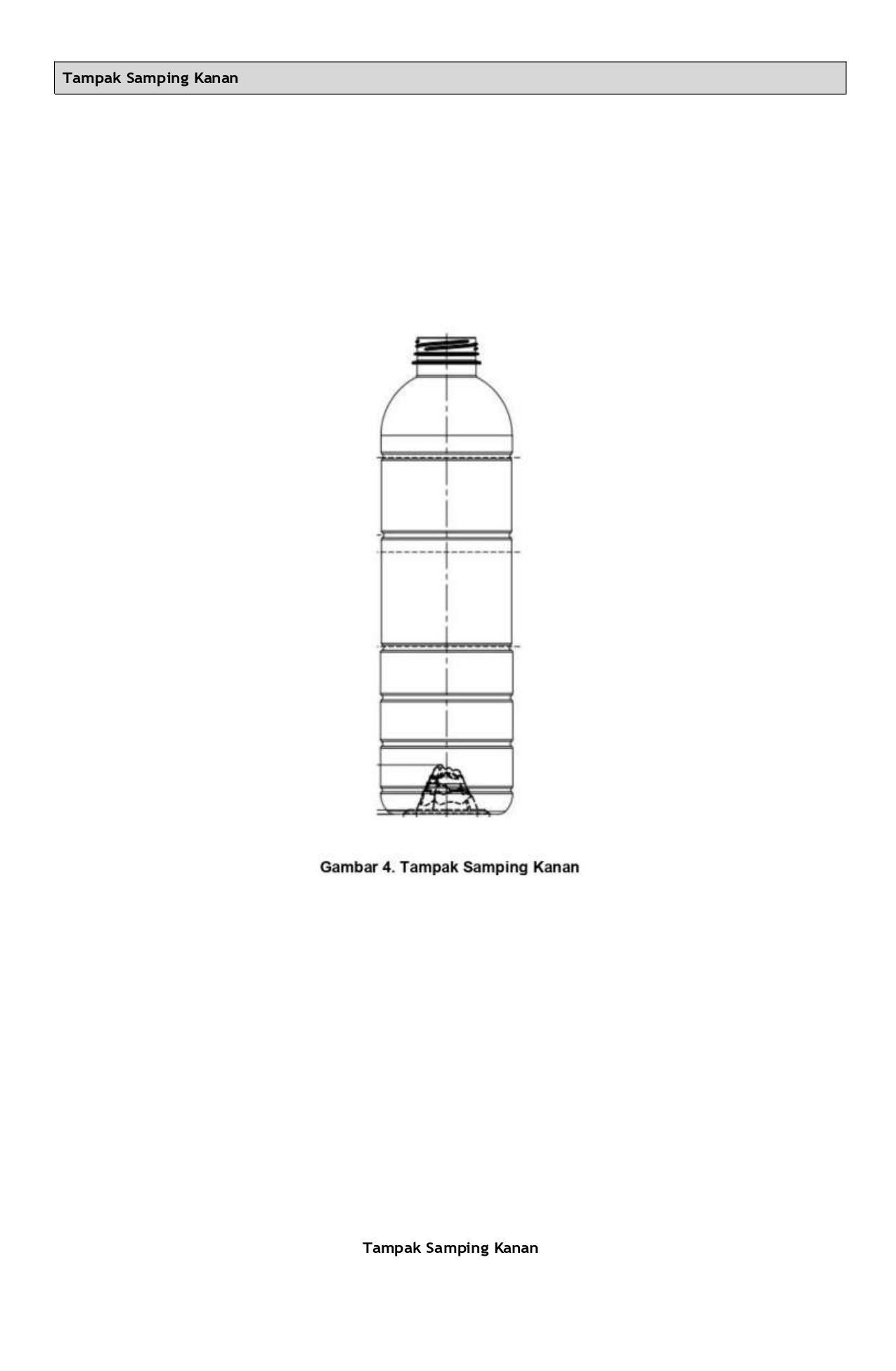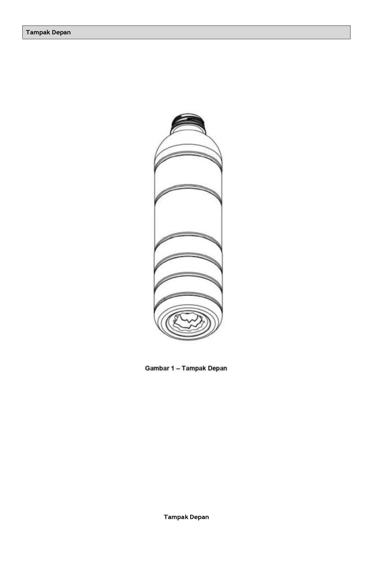 (IN) Sebagai tempat air mineral, air minum dalam kemasan atau lainnya yang Description memungkinkan. Botol ini dibuat dengan kreasi dan inovasi baru yang memberikan kesan estetis, kuat, lentur dan bermutu/berkualitas. Botol ini merupakan pengembangan dari produk-produk botol kami sebelumnya serta berbeda dengan produk-produk botol lainnya yang sejenis dan mempunyai ciri yang khas dari produk tersebut