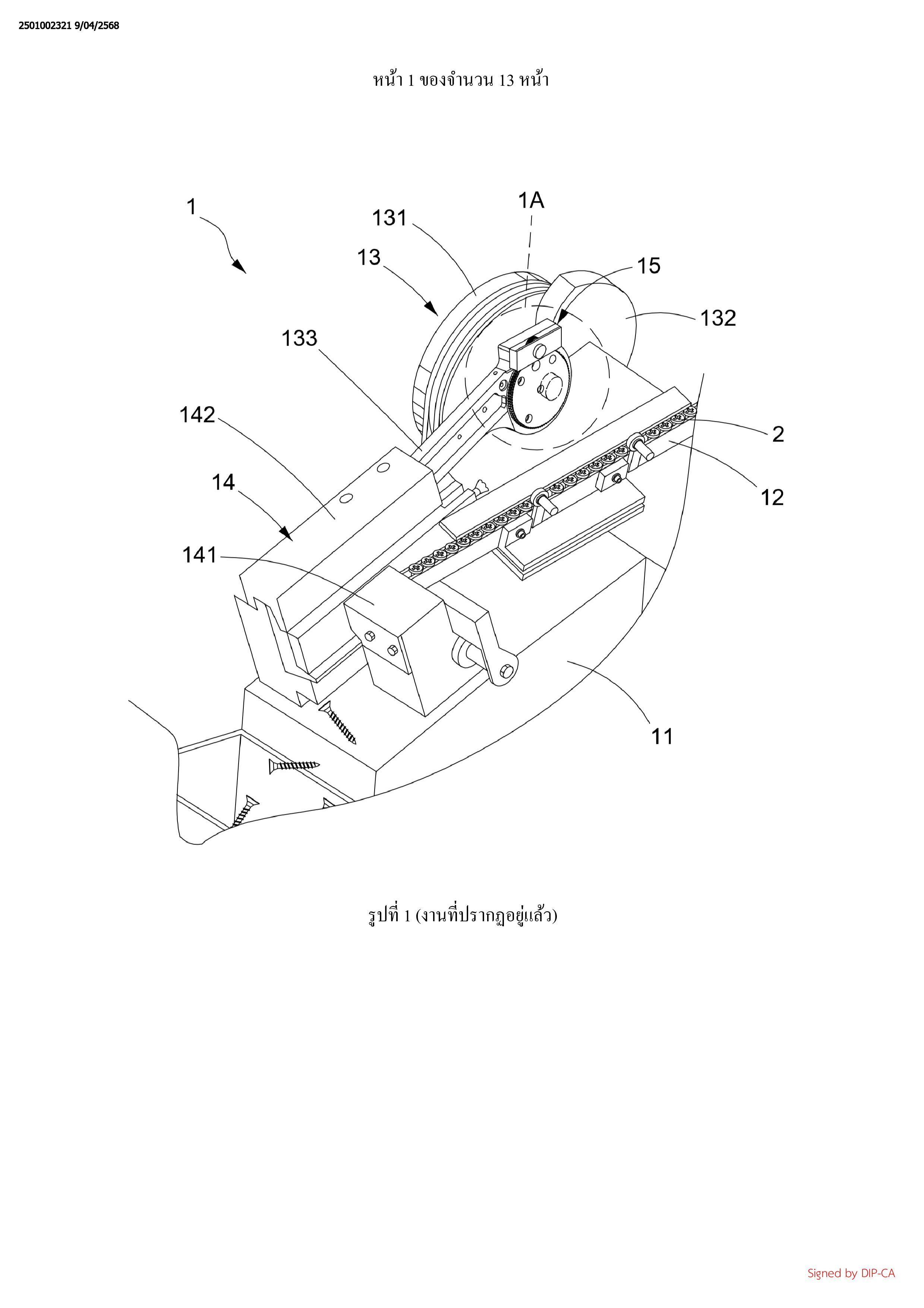 เกลียว (3) ดังกล่าวซึ่งเครื่องรีดเกลียว (3) ประกอบรวมด้วยฐาน (31), รางป้อน (32) และอุปกรณ์ส่ง