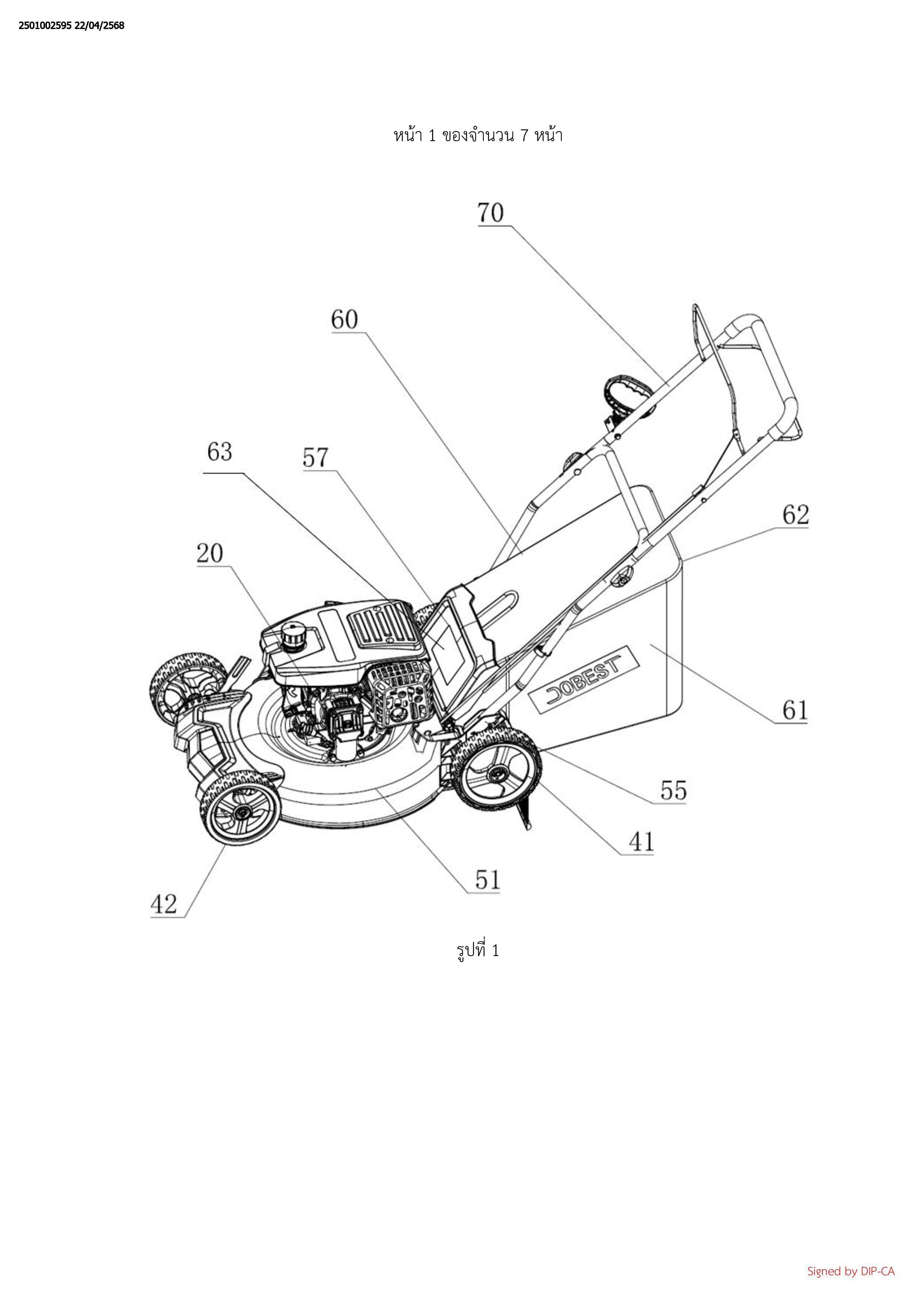 1. เครื่องตัดหญ้าขับเคลื่อนอัตโนมัติ ซึ่งประกอบรวมด้วย: กรอบ ชิ้นส่วนประกอบสำหรับตัดหญ้า ชิ้นส่วน