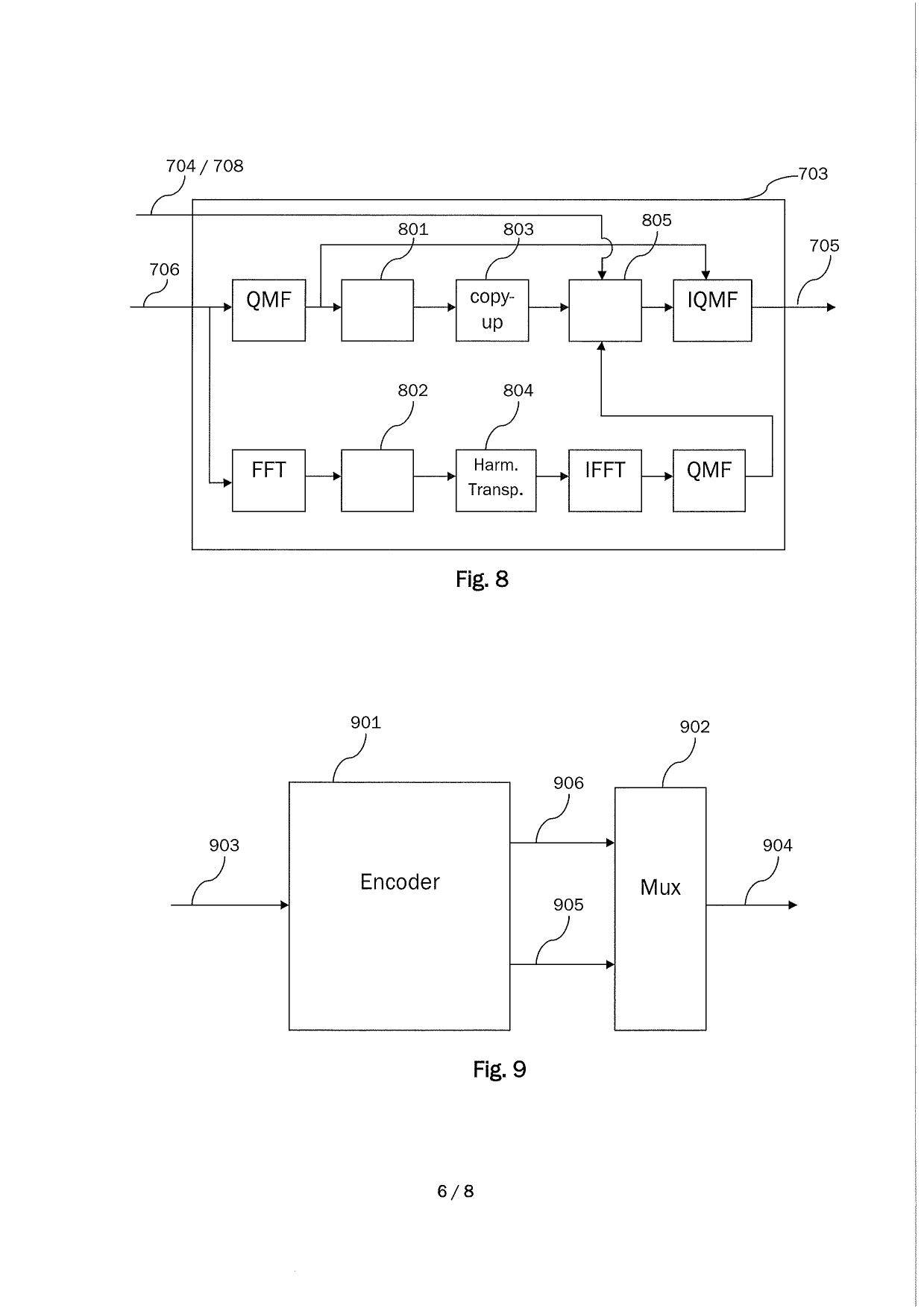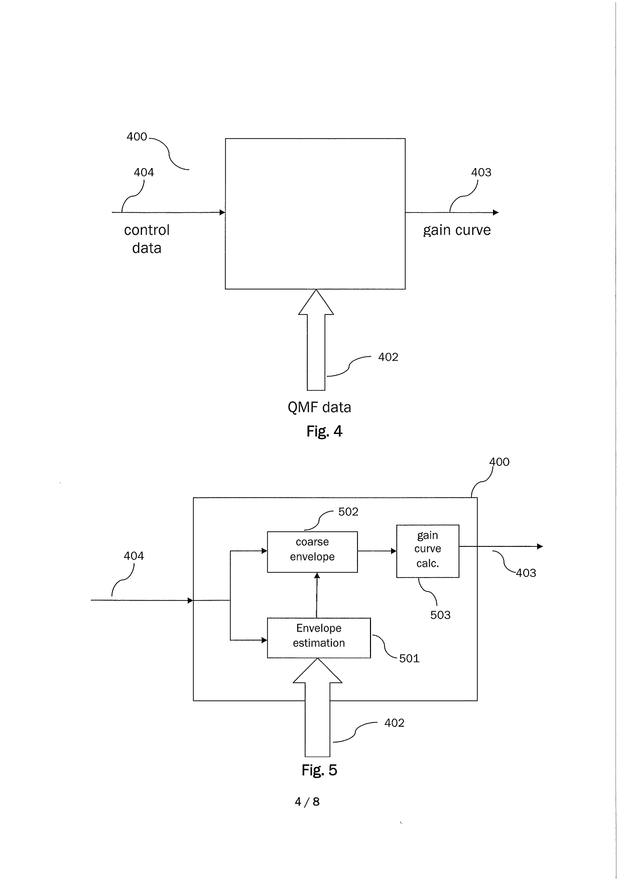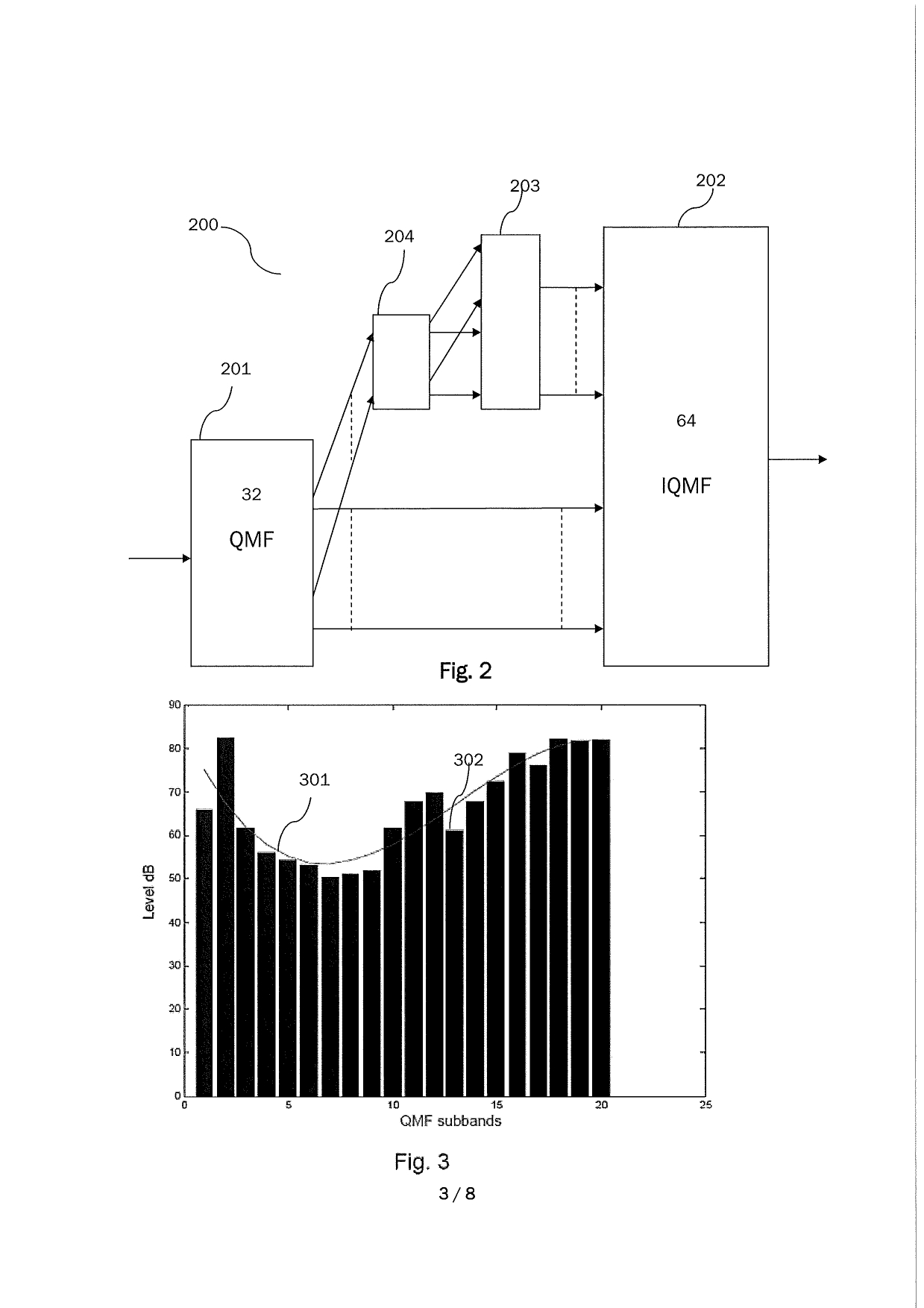(EN) - 30 - PROCESSING OF AUDIO SIGNALS DURING HIGH FREQUENCY RECONSTRUCTION Abstract The application relates to HFR (High Frequency Reconstruction/Regeneration) of audio signals. In particular, the application relates to a method and system for performing HFR of audio signals having large variations in energy level across the low frequency range which is used to reconstruct the high frequencies of the audio signal. A system configured to generate a plurality of high frequency subband signals covering a high frequency interval from a plurality of low frequency subband signals is described. The system comprises means for receiving the plurality of low frequency subband signals; means for receiving a set of target energies, each target energy covering a different target interval within the high frequency interval and being indicative of the desired energy of one or more high frequency subband signals lying within the target interval; means for generating the plurality of high frequency subband signals from the plurality of low frequency subband signals and from a plurality of spectral gain coefficients associated with the plurality of low frequency subband signals, respectively; and means for adjusting the energy of the plurality of high frequency subband signals using the set of target energies. Fig. 2