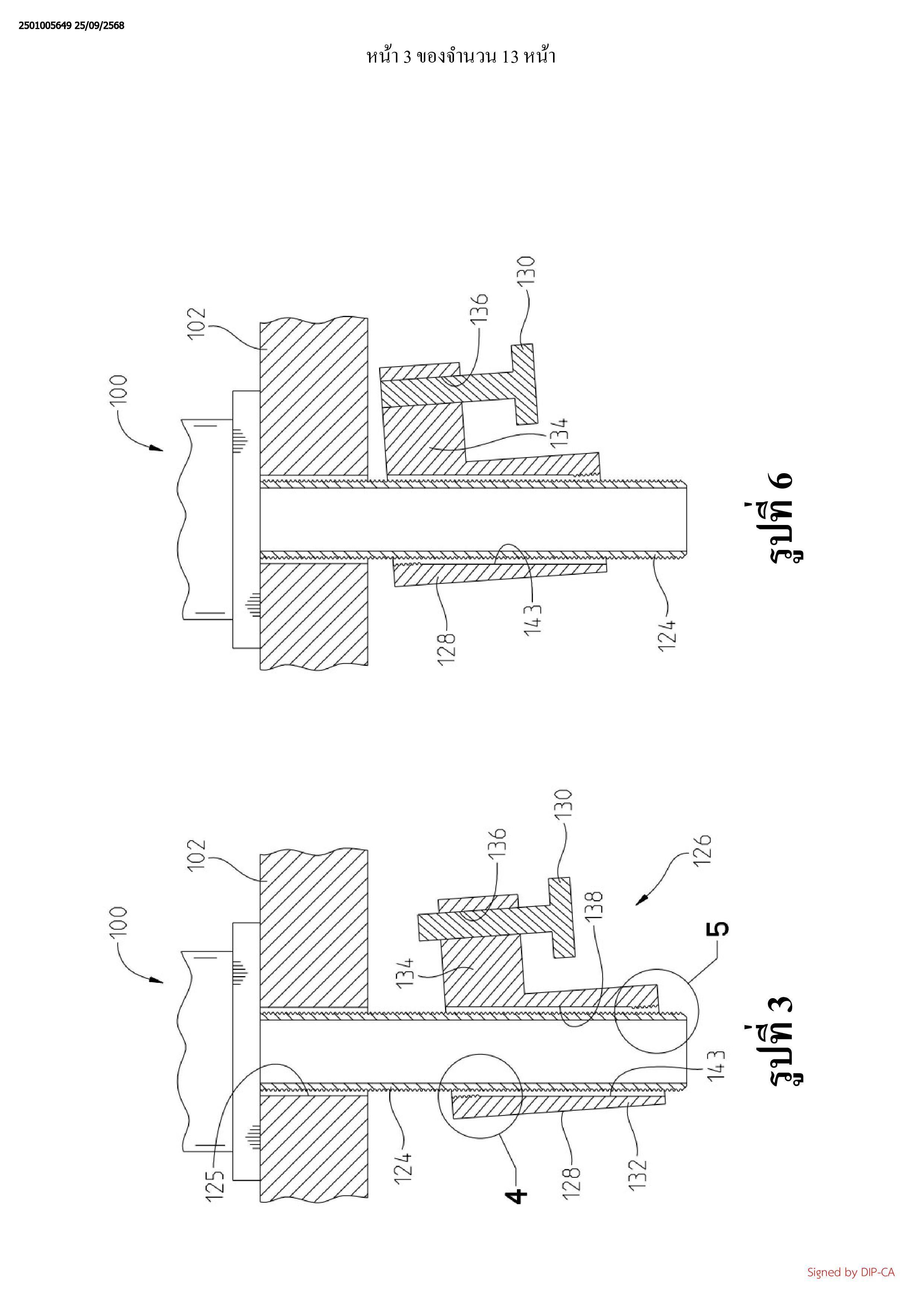 พื้นผิวที่หนึ่ง แท่งติดตั้งถูกเชื่อมต่อเข้ากับฐานและถูกสอดเข้าไปในเส้นทางผ่าน แท่งติดตั้งซึ่งมีพื้นผิว