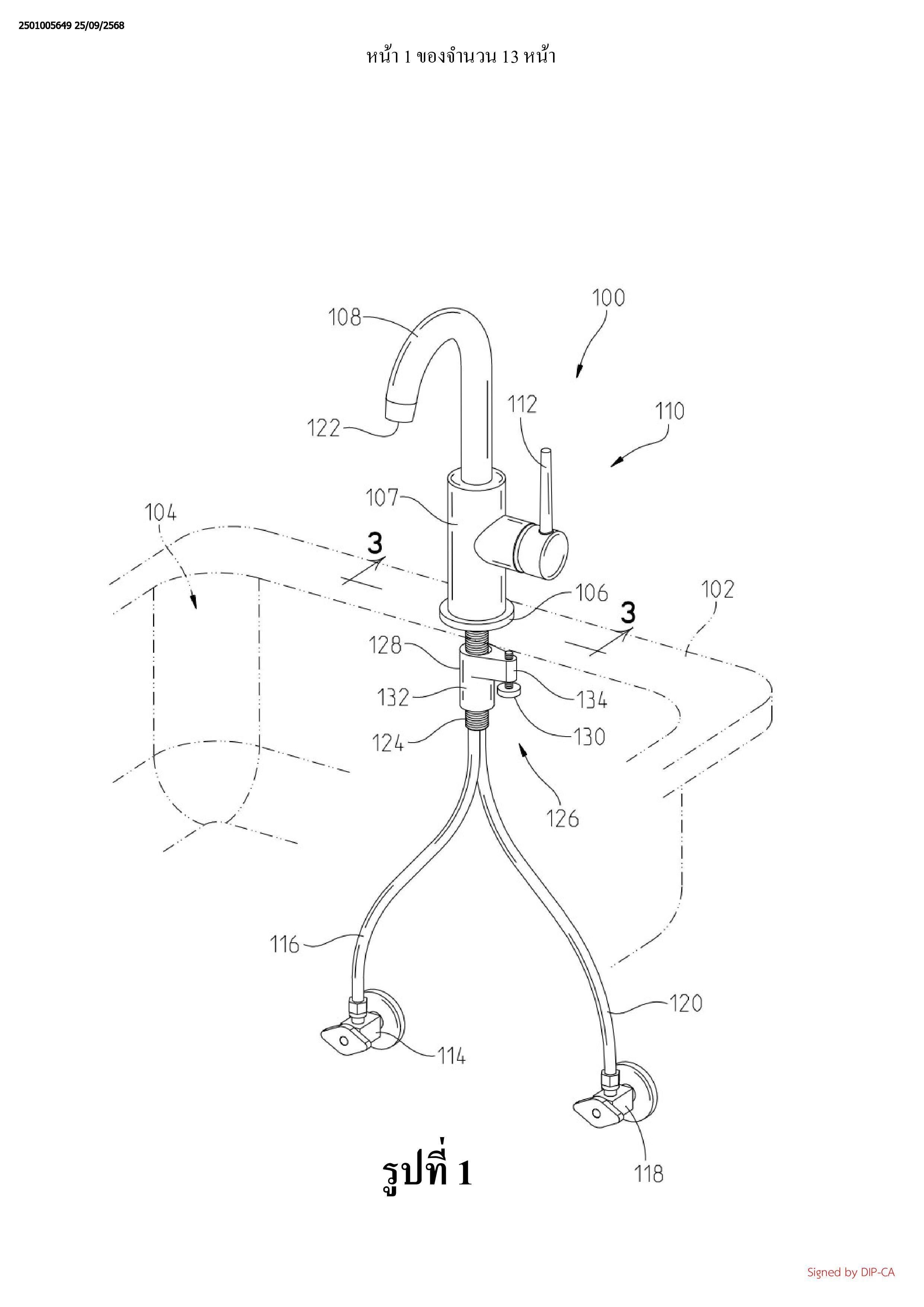 พื้นผิวที่หนึ่งของแท่นติดตั้งไปยังพื้นผิวที่สองของแท่นติดตั้ง ชุดชิ้นส่วนประกอบของก๊อกน้ำ