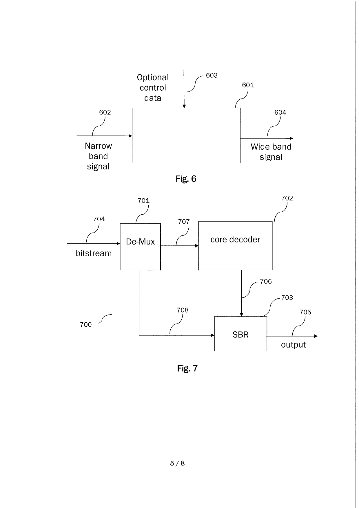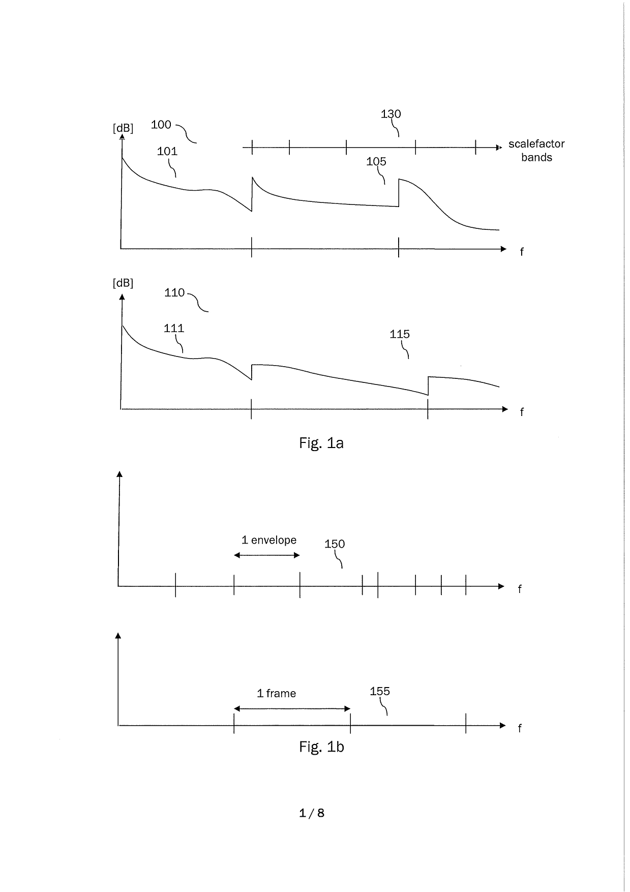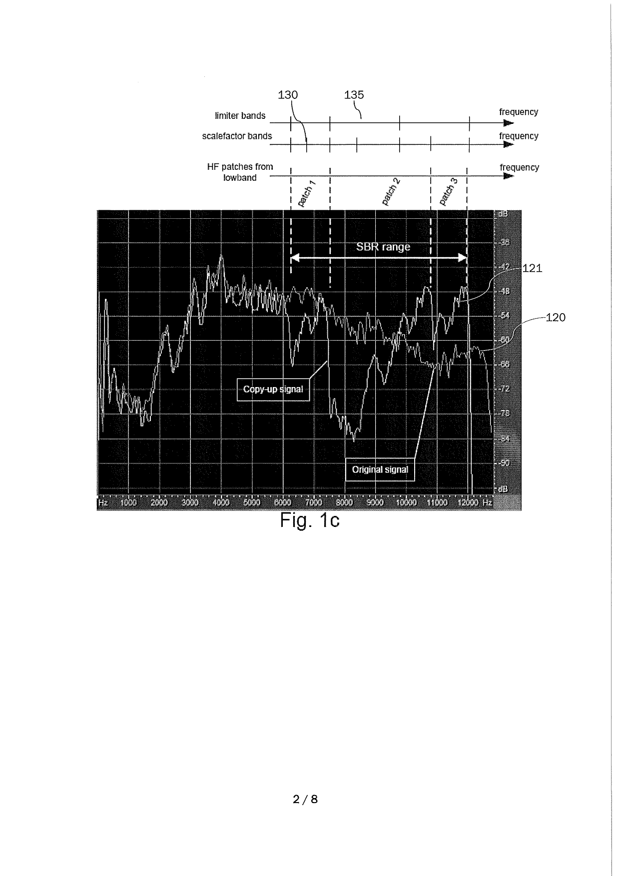 (EN) - 30 - PROCESSING OF AUDIO SIGNALS DURING HIGH FREQUENCY RECONSTRUCTION Abstract The application relates to HFR (High Frequency Reconstruction/Regeneration) of audio signals. In particular, the application relates to a method and system for performing HFR of audio signals having large variations in energy level across the low frequency range which is used to reconstruct the high frequencies of the audio signal. A system configured to generate a plurality of high frequency subband signals covering a high frequency interval from a plurality of low frequency subband signals is described. The system comprises means for receiving the plurality of low frequency subband signals; means for receiving a set of target energies, each target energy covering a different target interval within the high frequency interval and being indicative of the desired energy of one or more high frequency subband signals lying within the target interval; means for generating the plurality of high frequency subband signals from the plurality of low frequency subband signals and from a plurality of spectral gain coefficients associated with the plurality of low frequency subband signals, respectively; and means for adjusting the energy of the plurality of high frequency subband signals using the set of target energies. Fig. 2