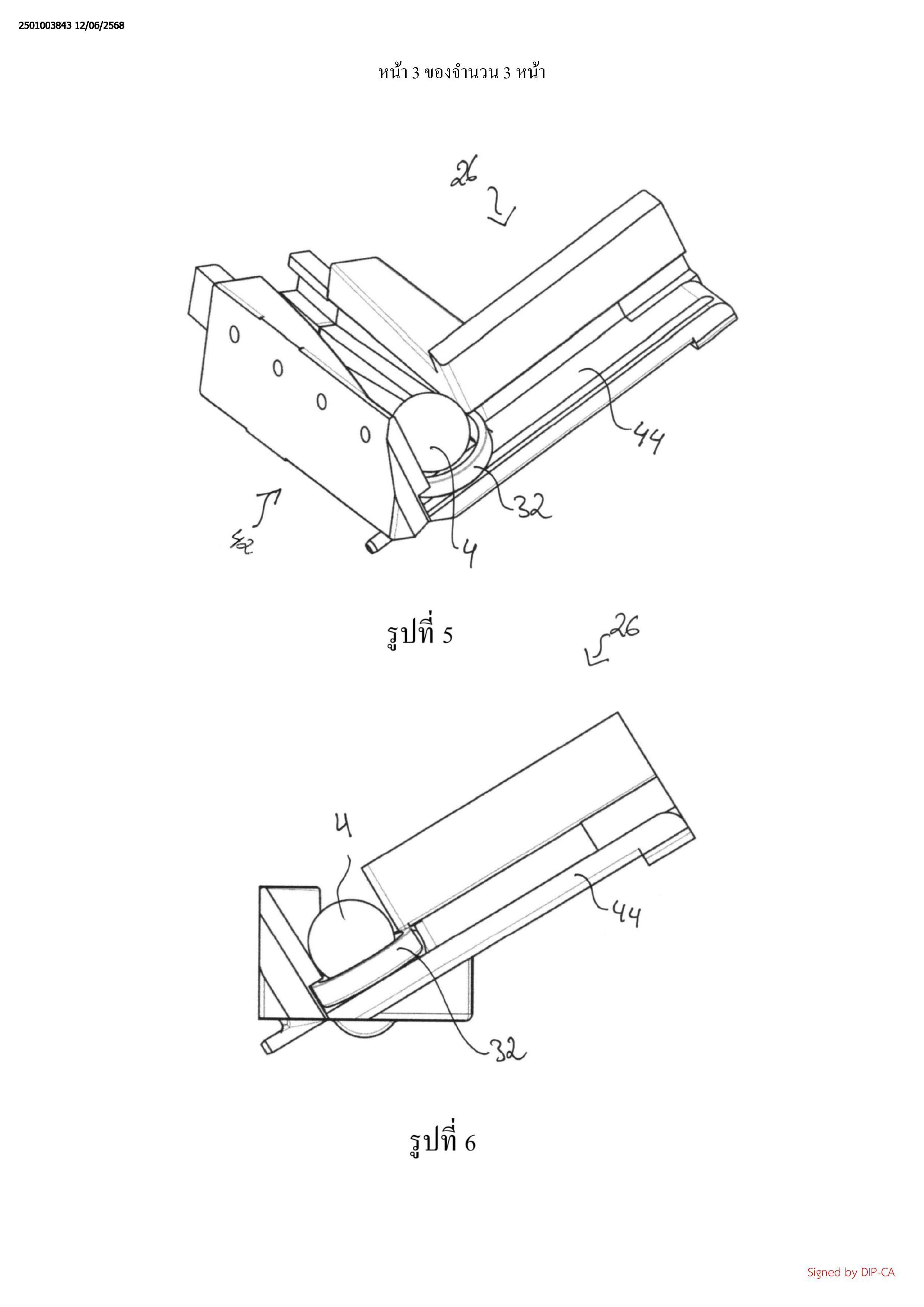 บอล (12), ส่วนจัดเก็บ (14) และ/หรือ ส่วนป้อนลูกบอล (16) มีอย่างน้อยหนึ่งส่วนประกอบนำทางลูก