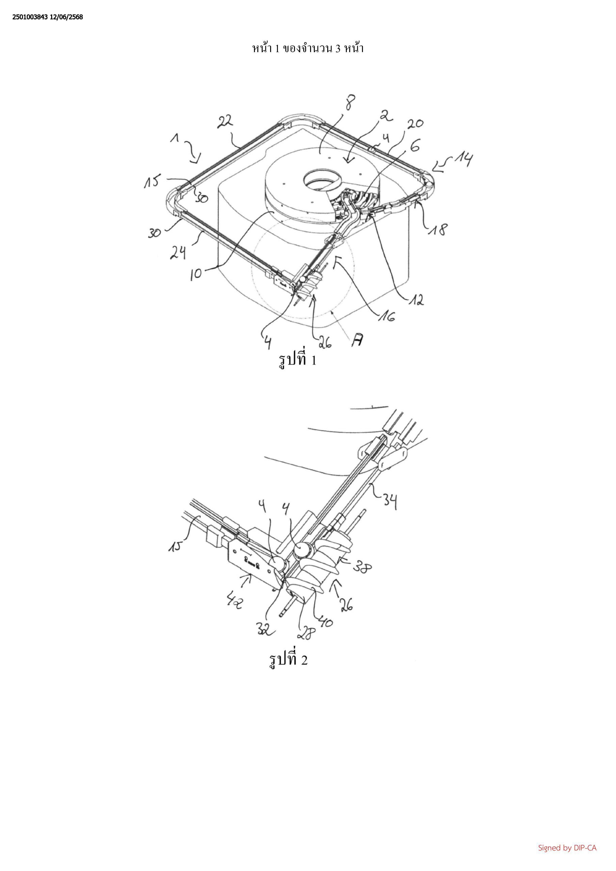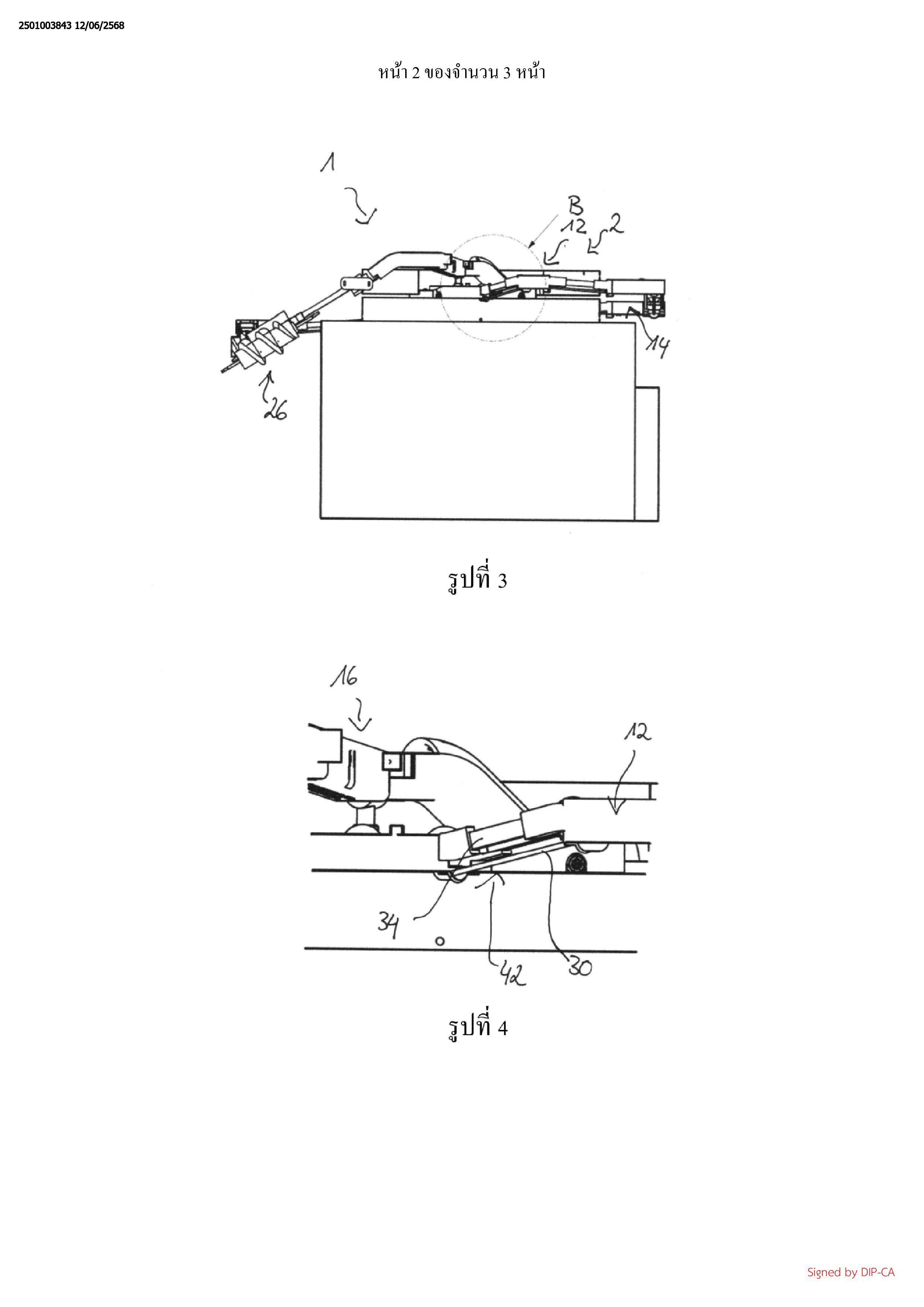 หน่วยยกขึ้น (26) ประกอบรวมด้วยสกรูลำเลียง (28) หรือ สายพานเครื่องลำเลียง (44)