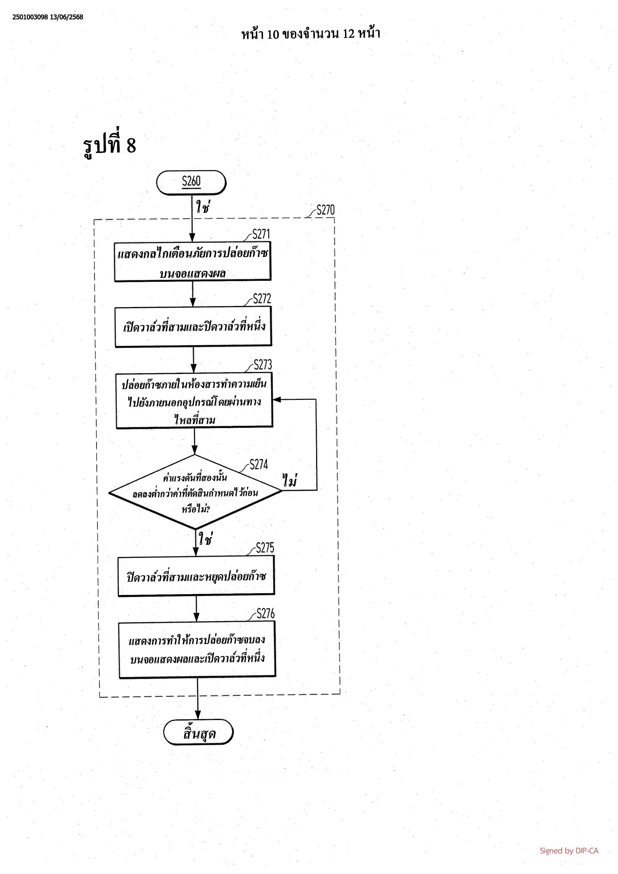 ปล่อยก๊าซเมื่อค่าของระดับสารทำความเย็นซึ่งเป็นของห้องสารทำความเย็นและถูกวัดค่าโดยตัวตรวจรู้