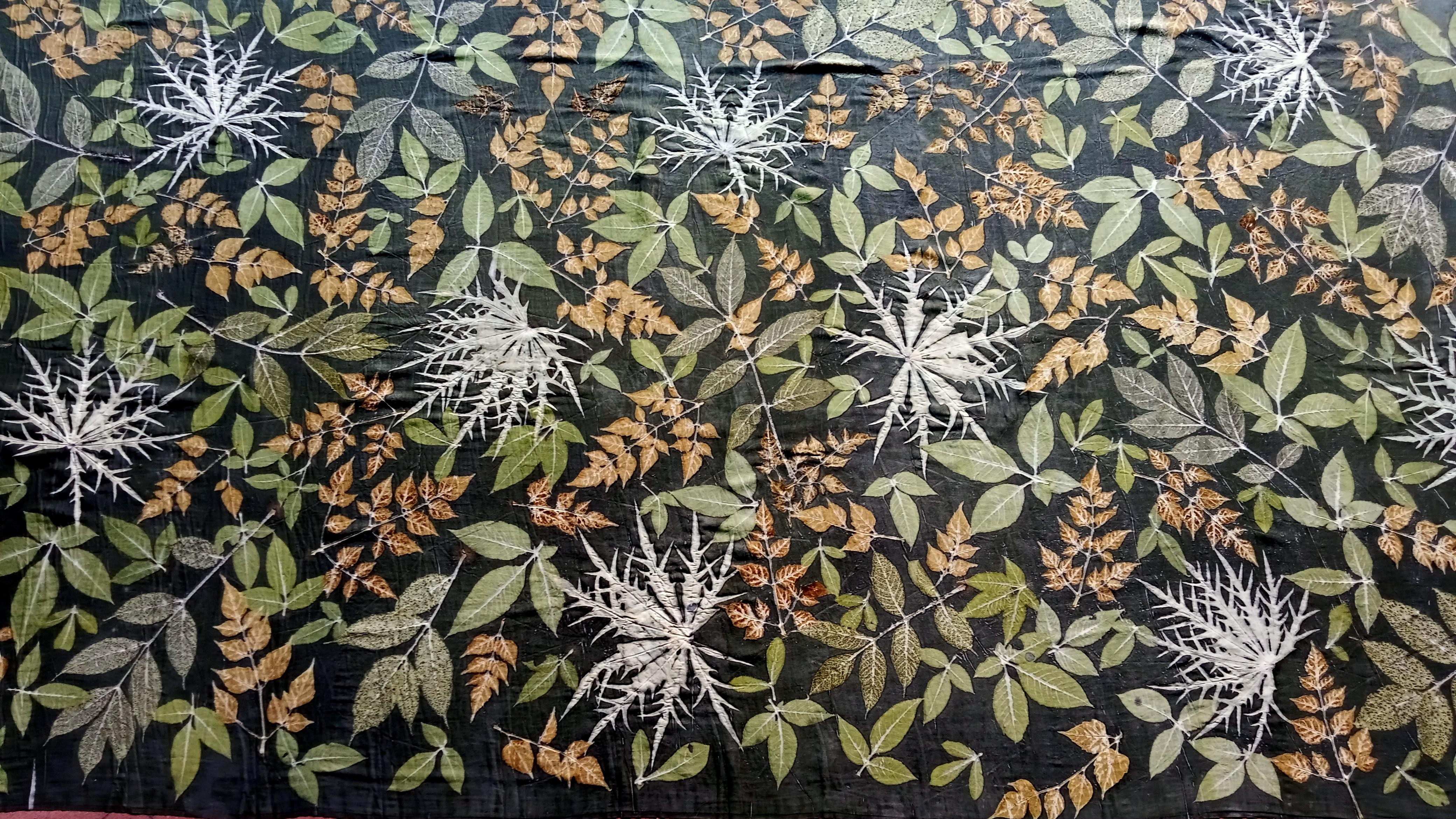 Invensi ini berkaitan dengan suatu formulasi dan metode pewarnaan alami berbasis daun Ketapang (Terminalia catappa) yang dirancang khusus untuk menghasilkan motif ecoprint dengan intensitas warna lebih tinggi, motif lebih tajam, serta ketahanan luntur yang lebih baik dibandingkan teknik ecoprint konvensional. Sistem yang dikembangkan mengintegrasikan dua mekanisme pewarnaan, yaitu penggunaan ekstrak daun Ketapang sebagai sumber warna latar dan transfer pigmen langsung dari daun sebagai pembentuk motif utama. Metode ini mencakup tahapan pembersihan daun, ekstraksi daun Ketapang sebagai pewarna, scouring kain, mordanting, penyusunan daun motif, penggunaan kain bantu yang telah direndam ekstrak, penggulungan dan pengikatan, proses steaming, serta pengeringan dan fiksasi warna. Pendekatan ini memungkinkan pewarna latar meresap secara merata pada kain, sekaligus meningkatkan kontras antara warna dasar dan motif daun. Hasil invensi menunjukkan bahwa formulasi ini mampu memberikan variasi warna coklat, kuning, hingga kehijauan dengan kualitas warna yang stabil pada tiga jenis kain: sutera, katun, dan baby kanvas. Selain itu, teknik ini bersifat ramah lingkungan karena tidak menggunakan bahan kimia sintetis. Invensi ini memberikan peningkatan signifikan dalam kualitas visual dan ketahanan warna ecoprint, sehingga menawarkan solusi yang lebih efisien, alami, dan aplikatif bagi industri tekstil berbasis pewarna alami.