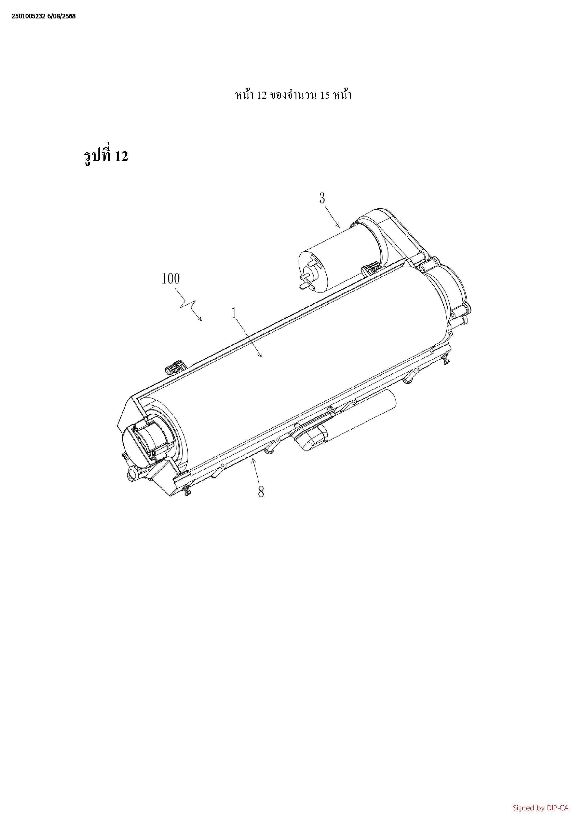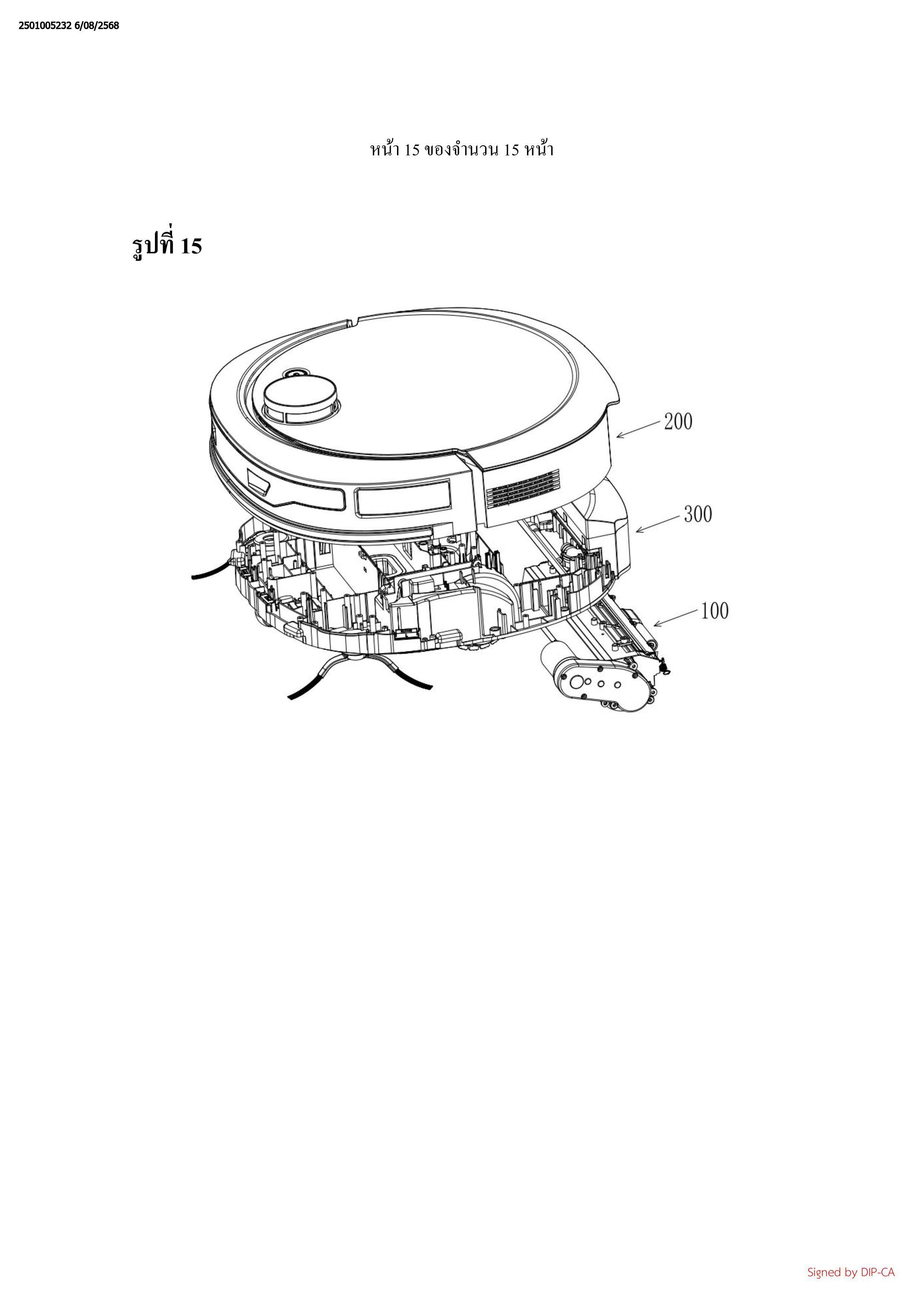 ชิ้นส่วนขับเคลื่อน (3), โดยที่ขึ้นส่วนขับเคลื่อน (3) ขับเคลื่อนทั้งหัวถูพื้นแบบลูกลิ้ง (1) และแท่งทำ