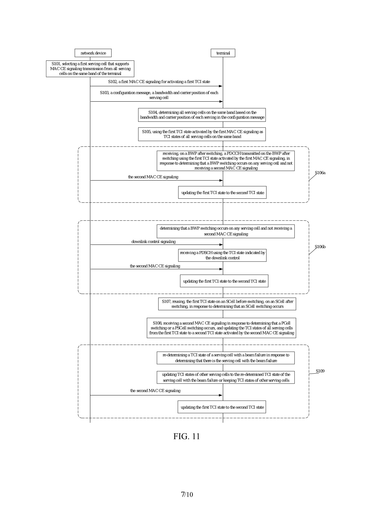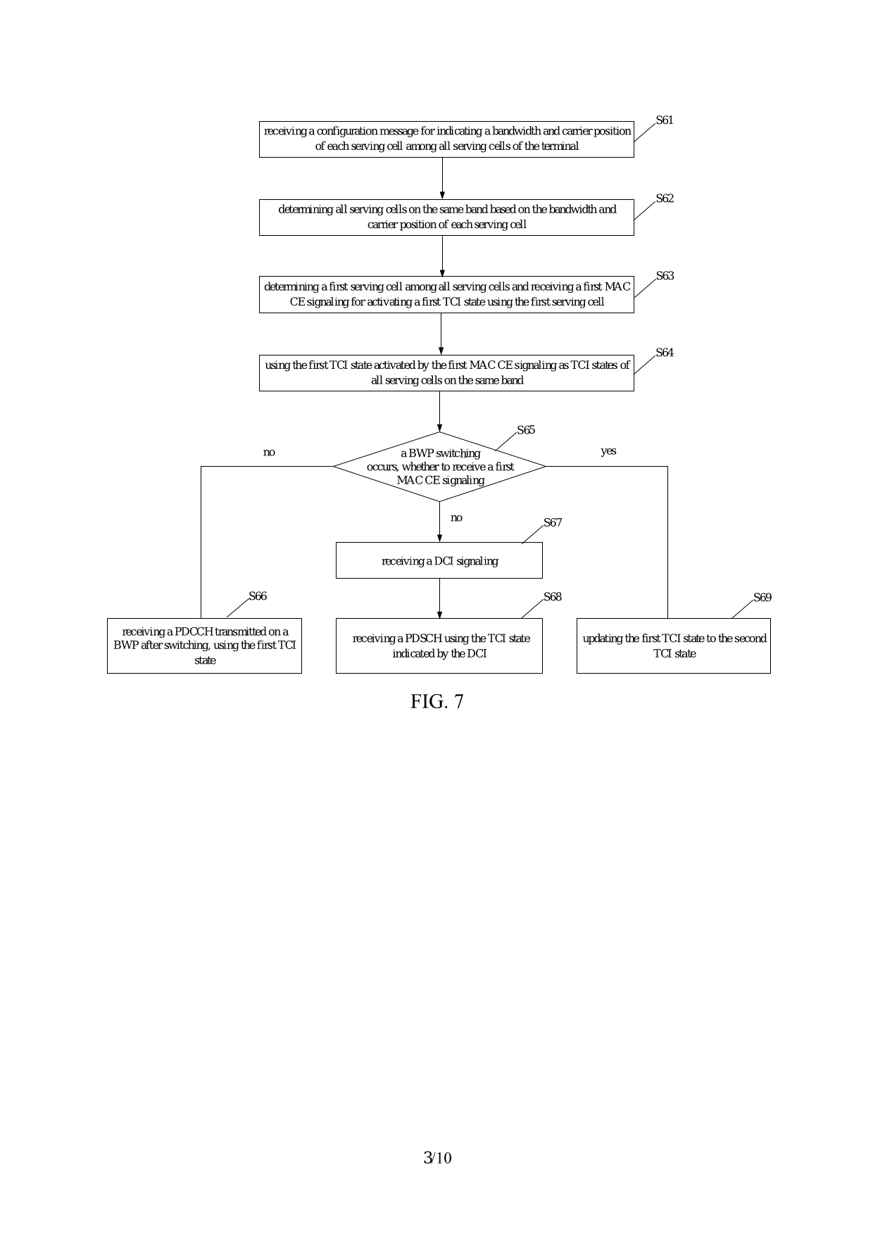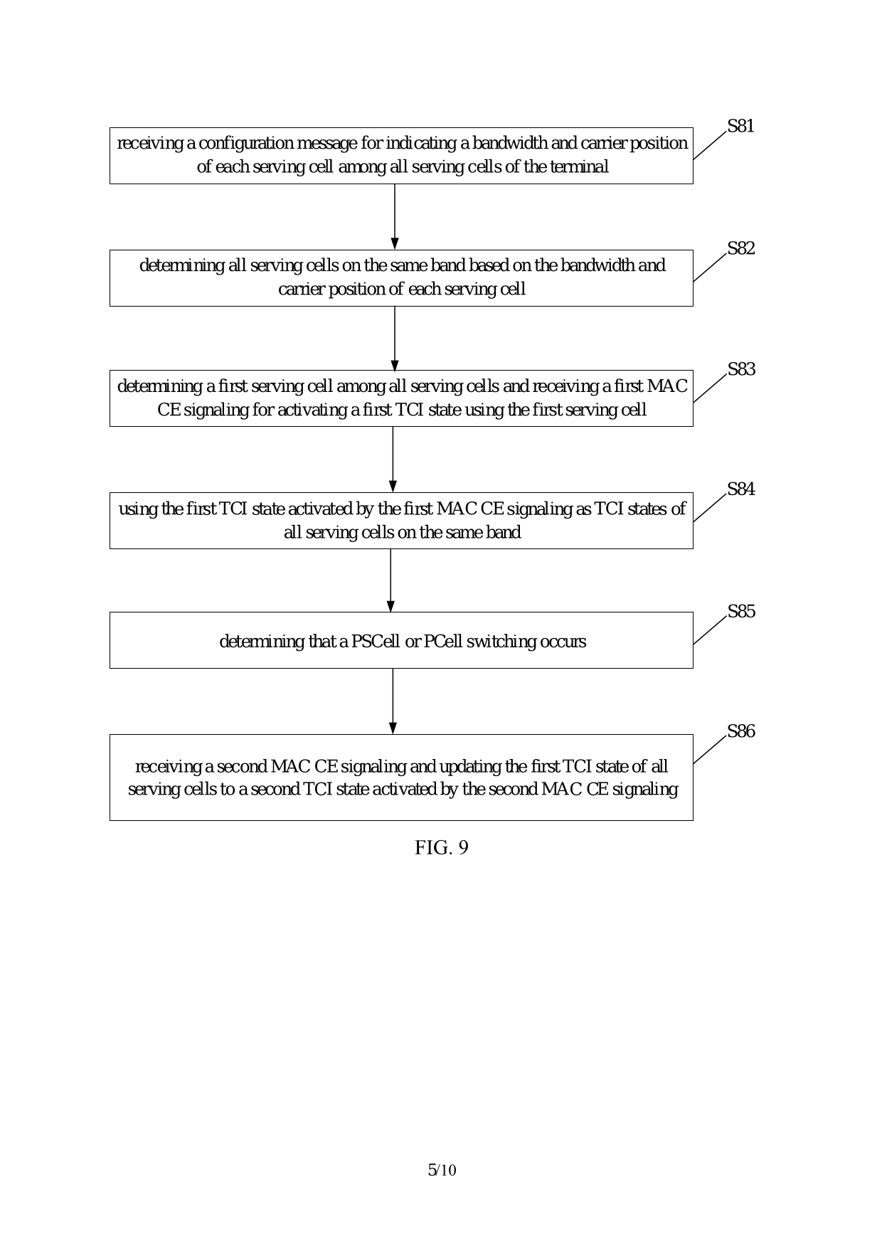 (EN) ABSTRACT A method for activating a TCI state includes: receiving a first MAC CE signaling, the first MAC CE signaling for activating a first TCI state; and using the first TCI state as TCI states of all serving cells on the same frequency band. Fig. 3 39