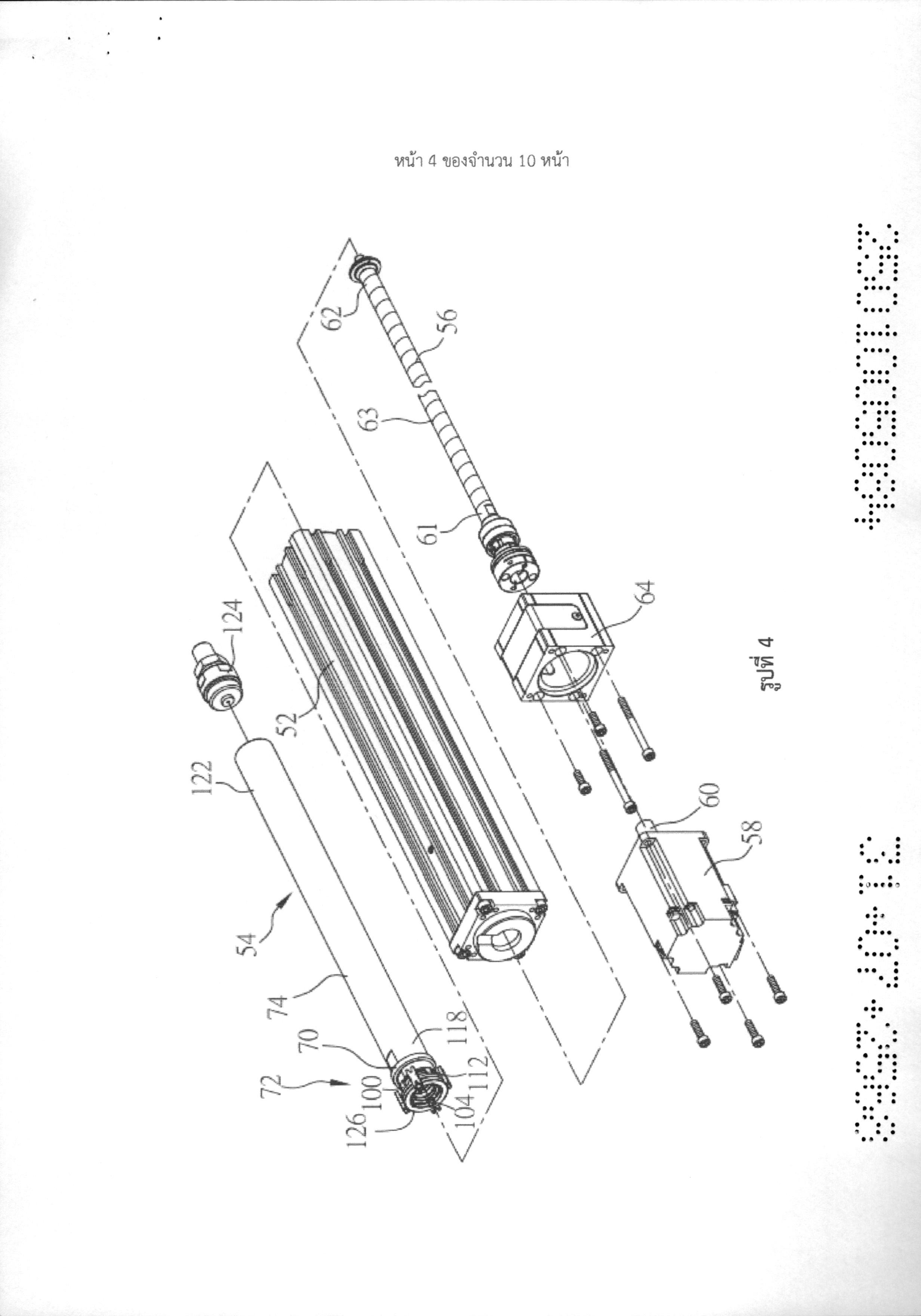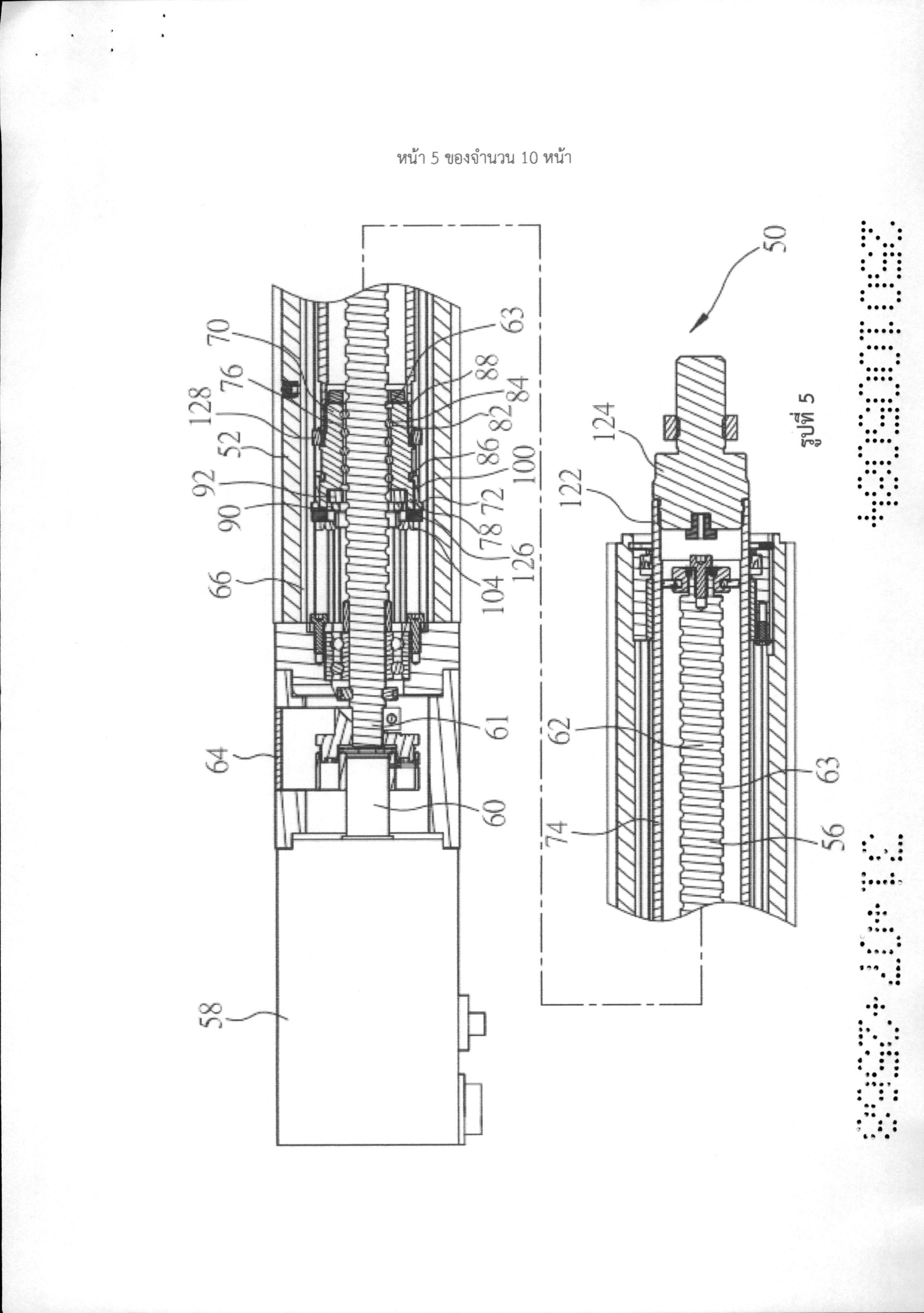 หัวขับไฟฟ้ามีกระบอกด้านบอก หน่วยเลือนและเพลาเกลียวรวมอยู่ด้วย ร่องนำอย่างน้อยหนึ่งร่อง ถูกจัดให้อยู่ในผนังรูของกระบอกด้านนอก หน่วยเลื่อนมีชิ้นส่วนน็อต ชิ้นส่วนจำกัดการหมุนที่ถูกขบยึดบน ปลายที่หนึ่งของชิ้นส่วนน็อต และเพลาส่งกำลังที่ถูกขบยึดอยู่บนปลายที่สองของชิ้นส่วนน็อตรวมอยู่ด้วย ชิ้นส่วนจำกัดการหมุนมีแท่งนำอย่างน้อยหนึ่งอับที่รวมอยู่ใบร่องนำของกระบอกด้านนอกในลักษณะที่ เคลื่อนที่ได้ เพลาเกลียวถูกเชื่อมต่อกับชิ้นส่วนน็อตในลักษณะที่สามารถเคลื่อนไหวได้ค่อนข้างมาก เมื่อเพลา เกลียวหมุน ชิ้นส่วนน็อต ชิ้นส่วนจำกัดการหมุนและเพลาส่งกำลังก็เคลื่อนที่ไปกับเพลาเกลียว และแท่งนำ ของชิ้นส่วนจำกัดการหมุนก็เคลื่อนที่ภายในร่องนำ เพื่อไปจำกัดชิ้นส่วนน็อตและเพลาส่งกำลังไม่ให้หมุนไป กับกระบอกด้านนอก