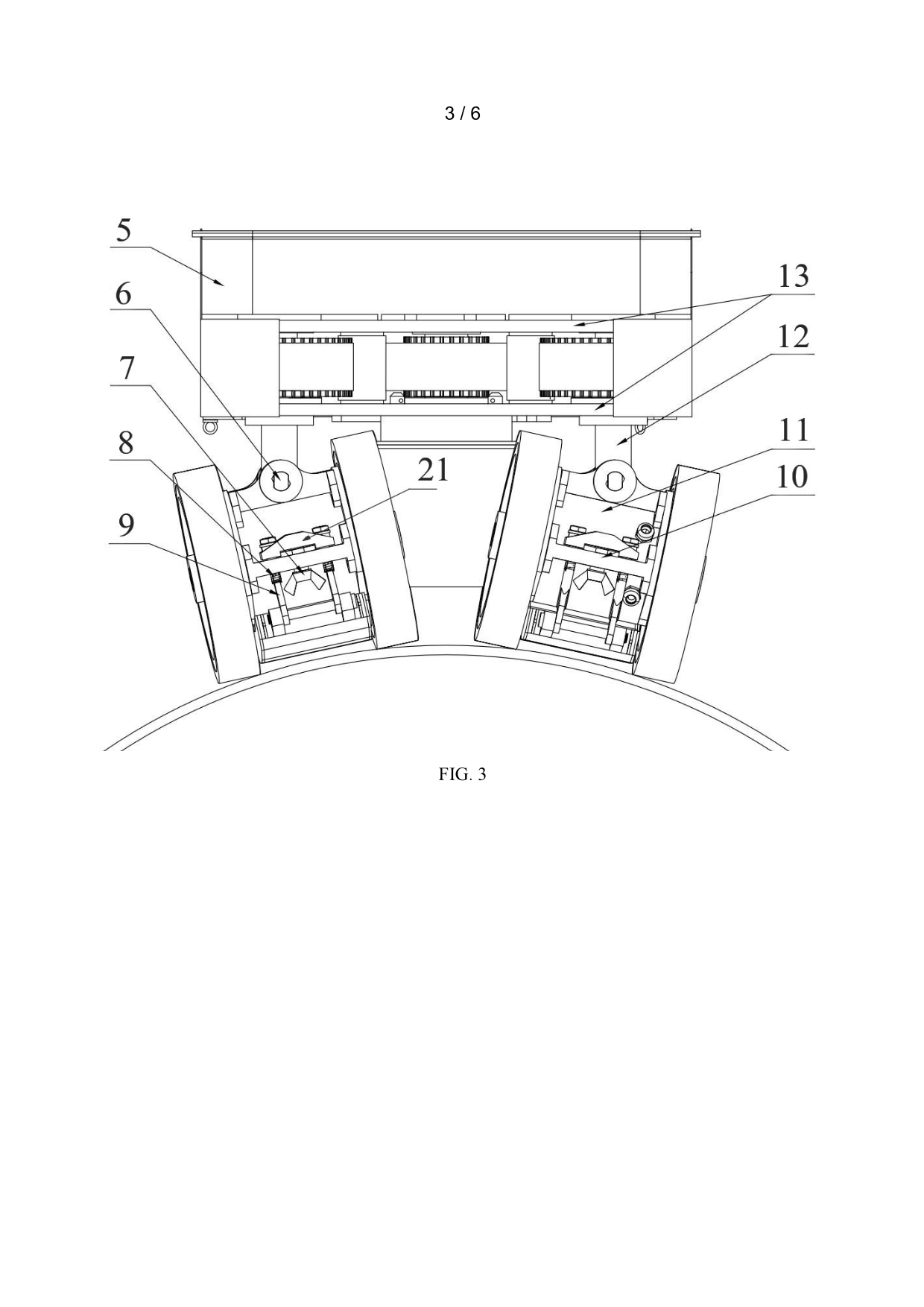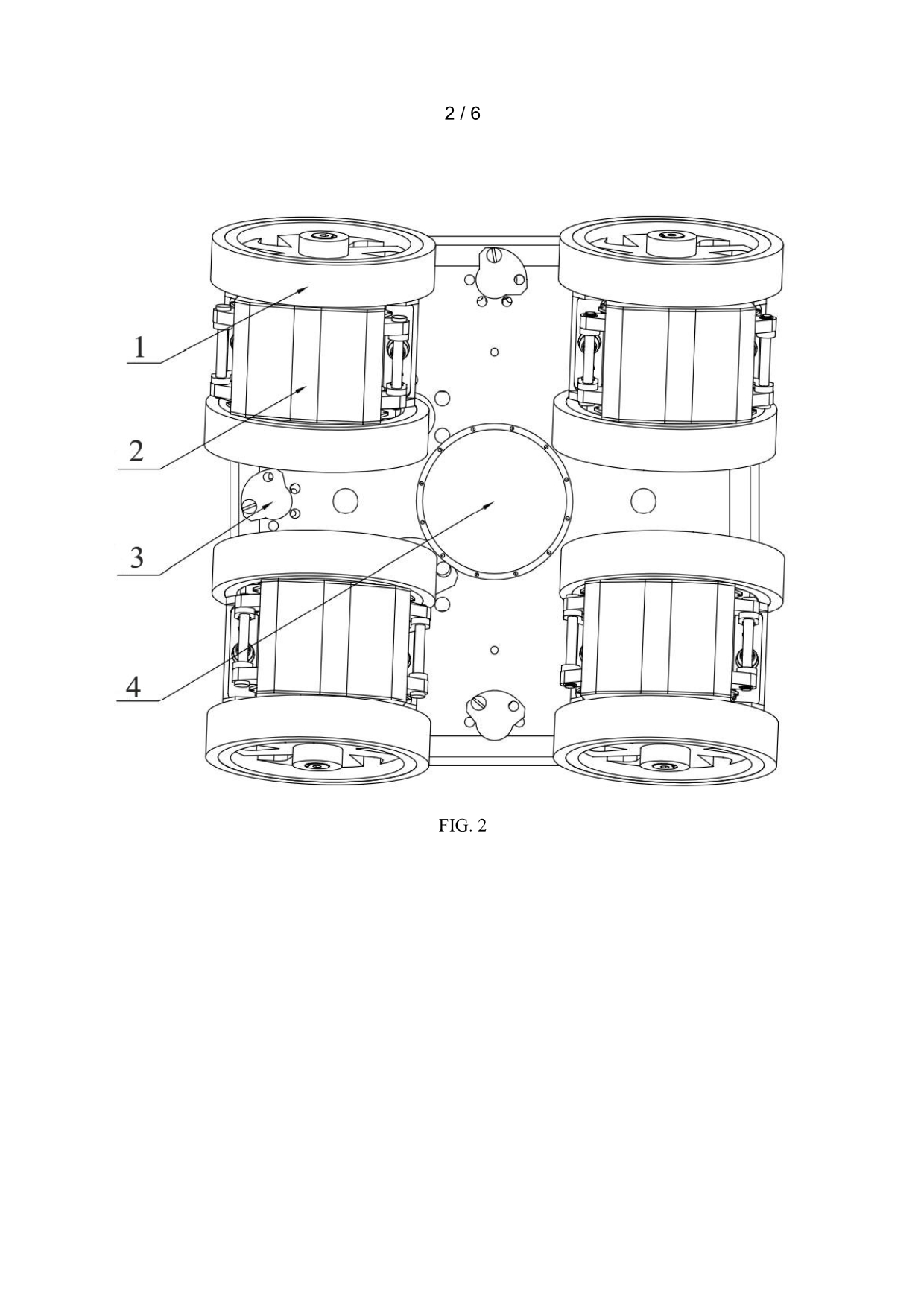 (EN) -10- PIPE CLIMBING ROBOT ABSTRACT 5 A pipe climbing robot including a veering mechanism is disclosed. A control box (5) is arranged at a top of the veering mechanism. The veering mechanism is powered by a single motor. Each of a plurality of driving units is connected with the veering mechanism at each of four corners of a bottom of the veering mechanism. Each of the plurality of driving units includes two driving wheels (1). A lower part of each of the plurality of driving units is connected with an adsorption apparatus (2) 10 through an adjusting mechanism. The adsorption apparatus (2) has an adjustable adsorption force. Each of the plurality of driving units is connected with the veering mechanism through a curvature self-adaptive mechanism (6). (To be published with Fig. 1) 15