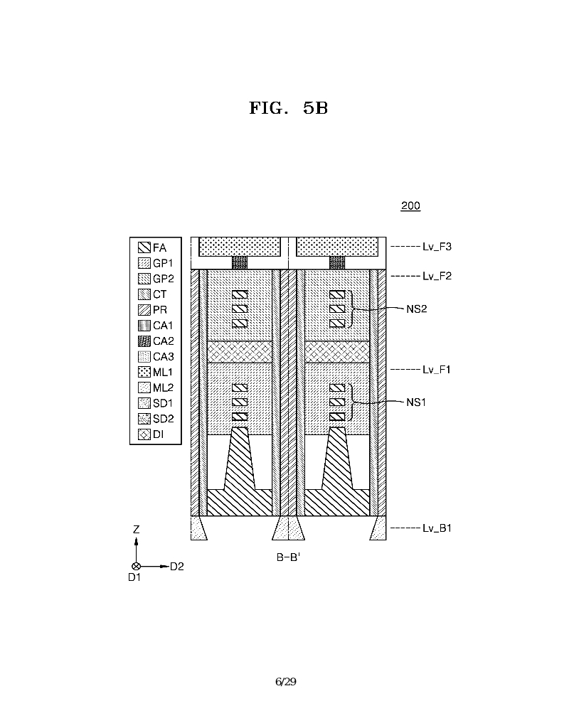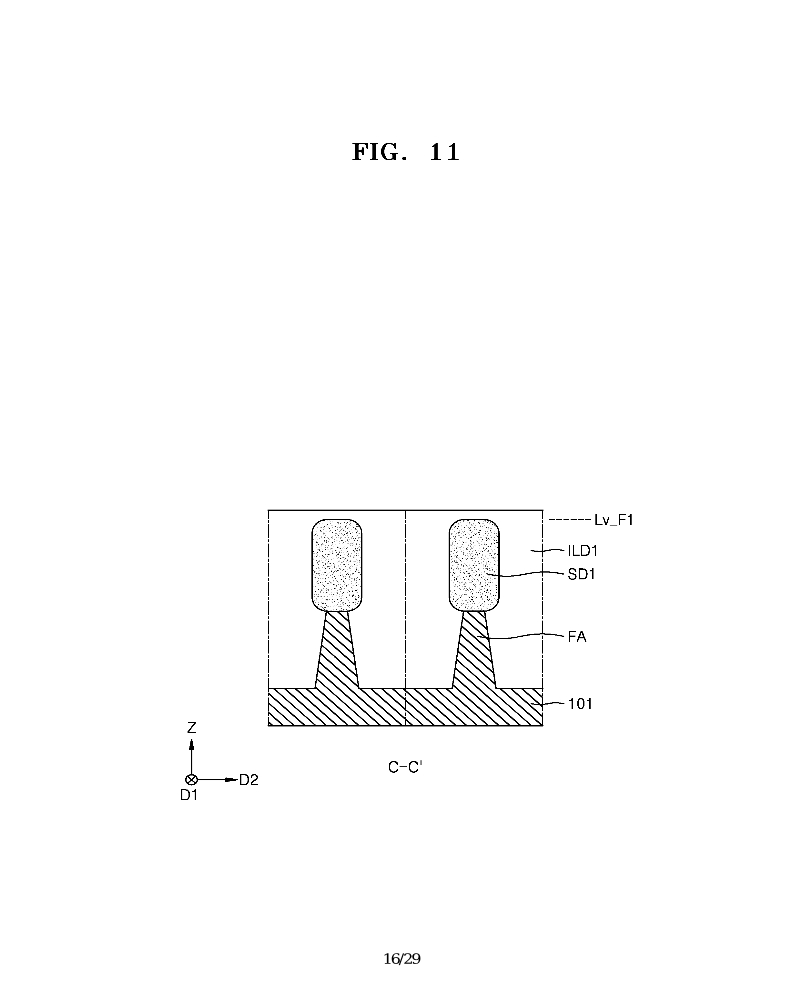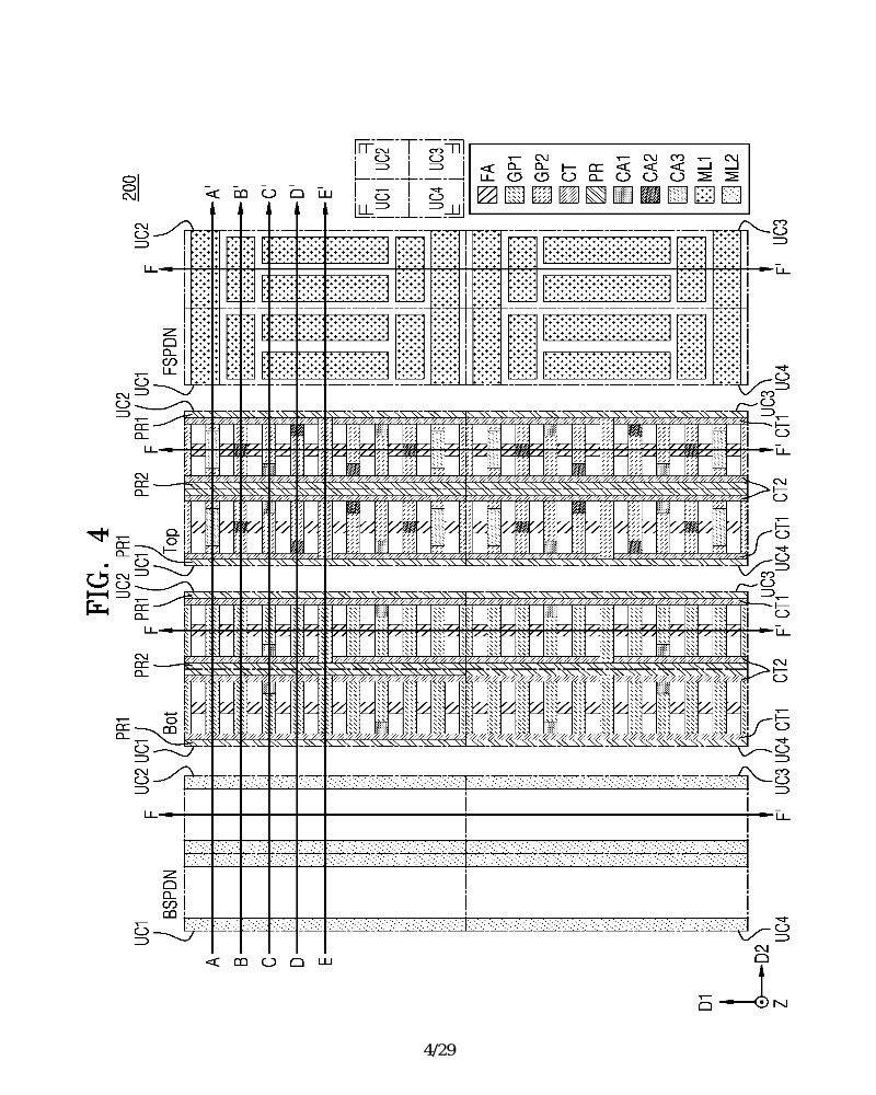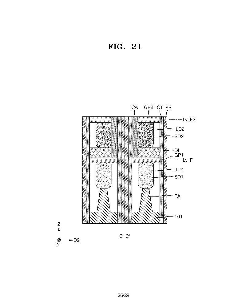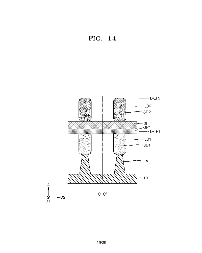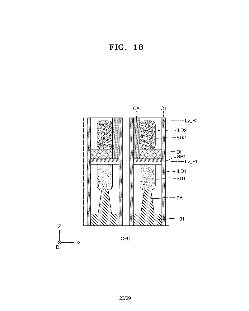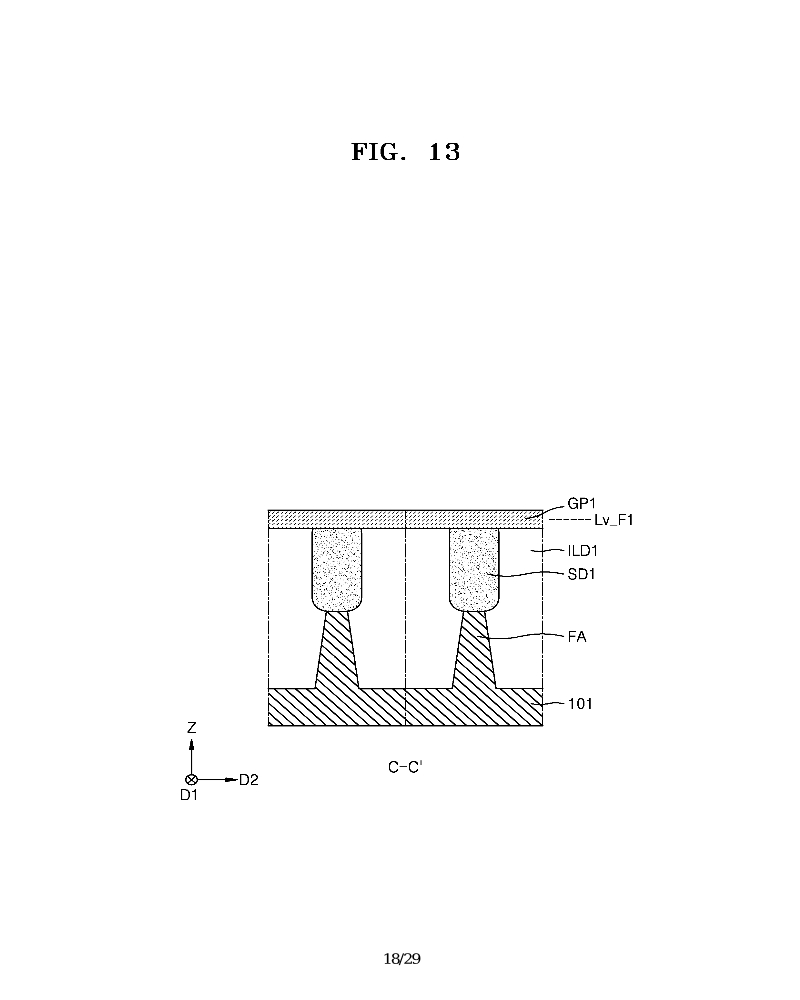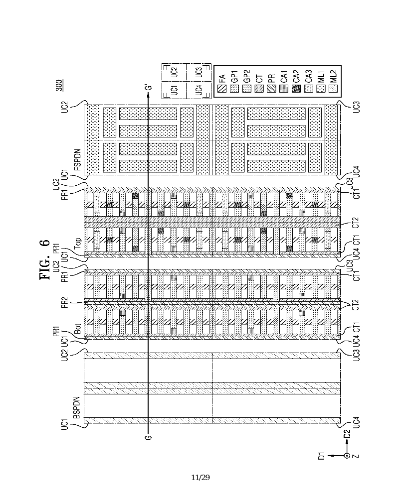 (EN) ABSTRACT According to the inventive concept, based on the layout of a 3-dimensional stack structure enabling minimization of the planar area occupied by unit cells and simplification of the configuration of a wiring connection structure between transistors defining at least a portion of an SRAM device, an integrated circuit with a reduced size and improved reliability may be implemented. FIG. 3 28