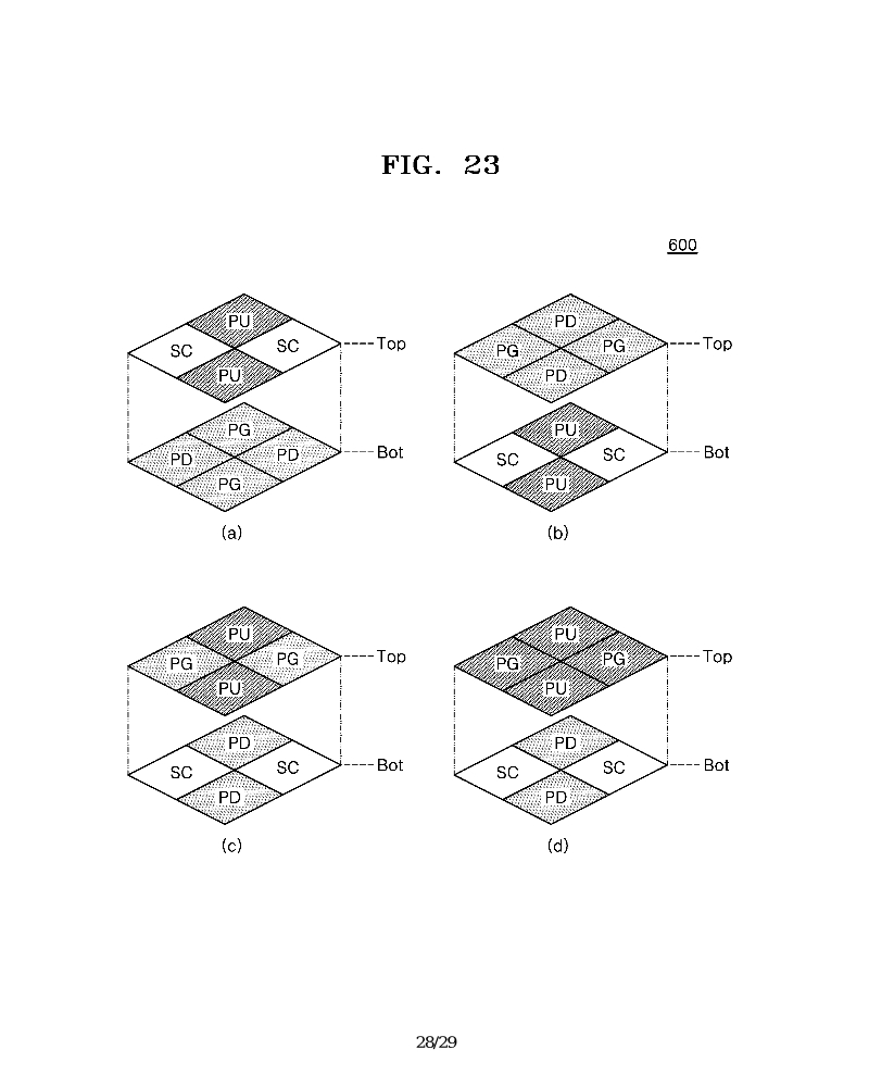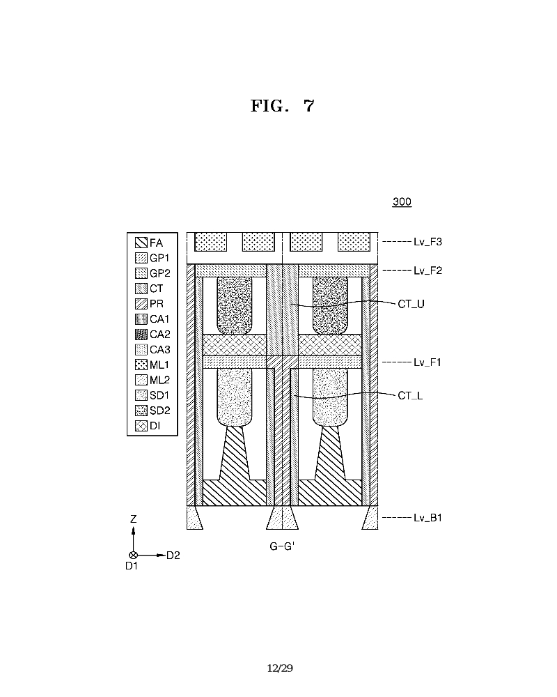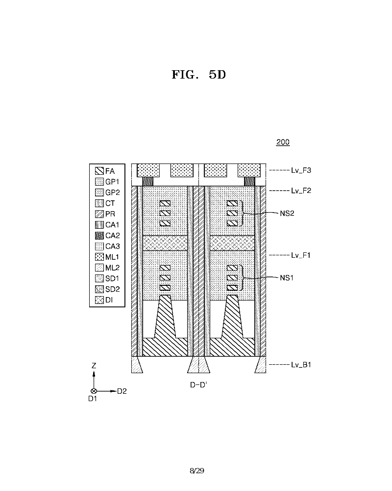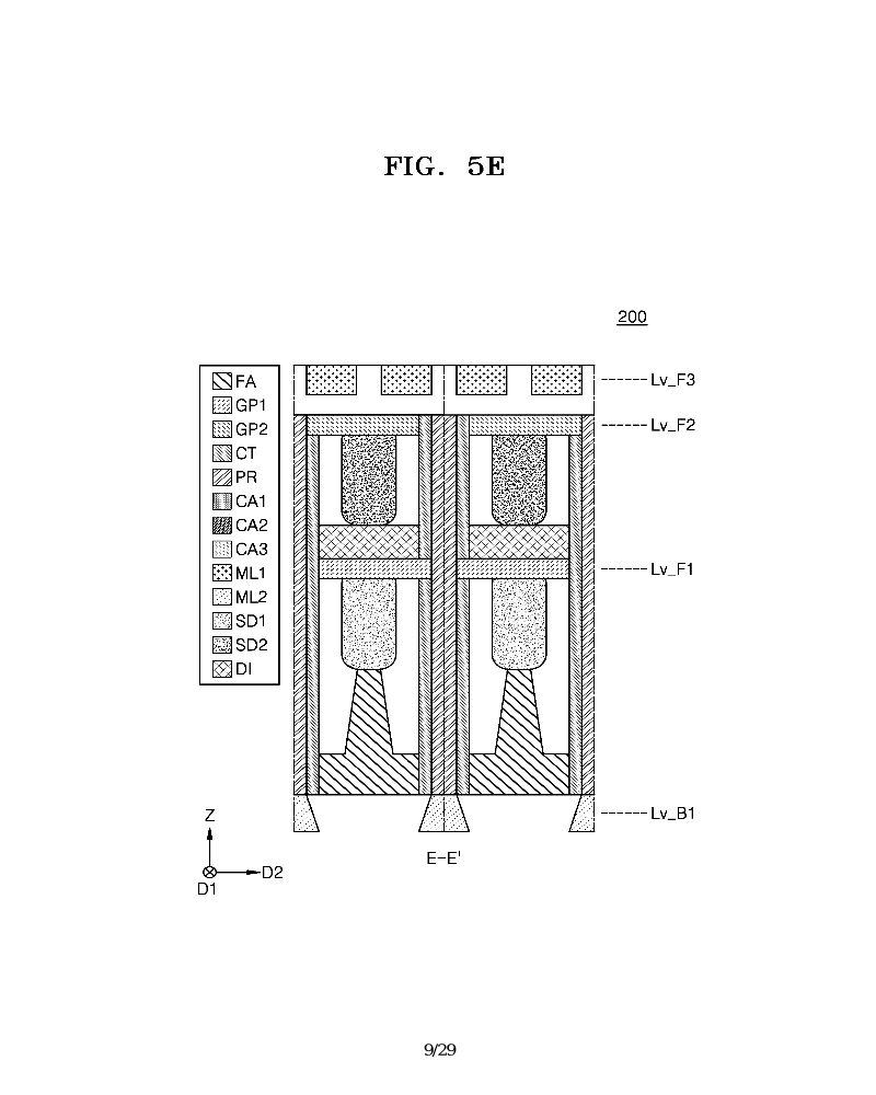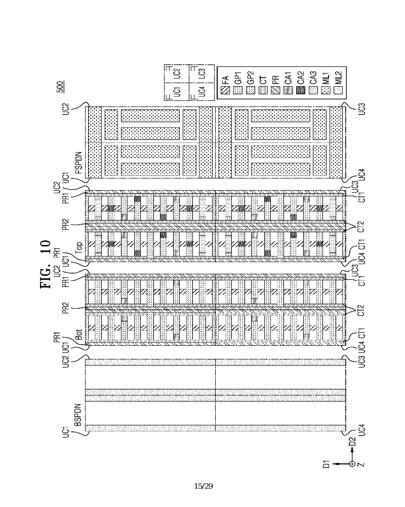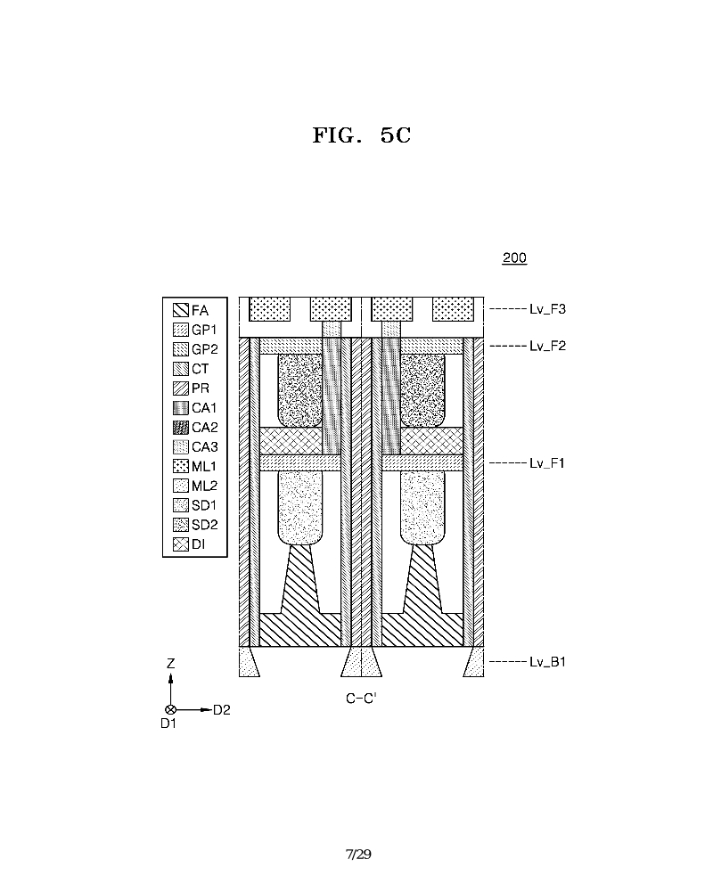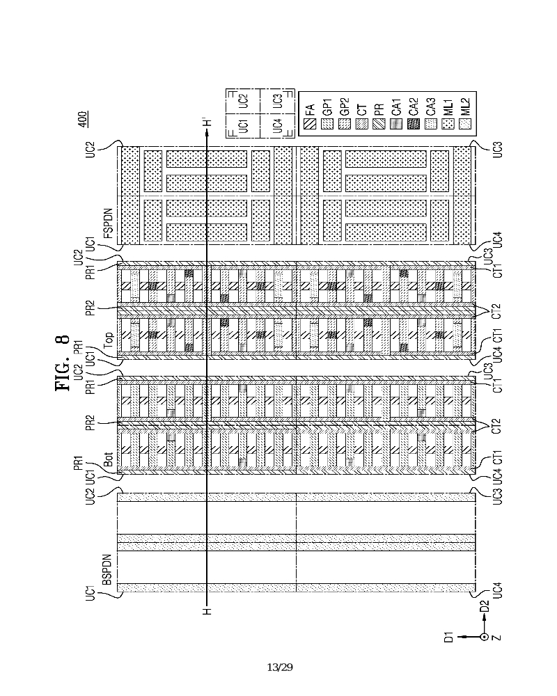 (EN) ABSTRACT According to the inventive concept, based on the layout of a 3-dimensional stack structure enabling minimization of the planar area occupied by unit cells and simplification of the configuration of a wiring connection structure between transistors defining at least a portion of an SRAM device, an integrated circuit with a reduced size and improved reliability may be implemented. FIG. 3 28