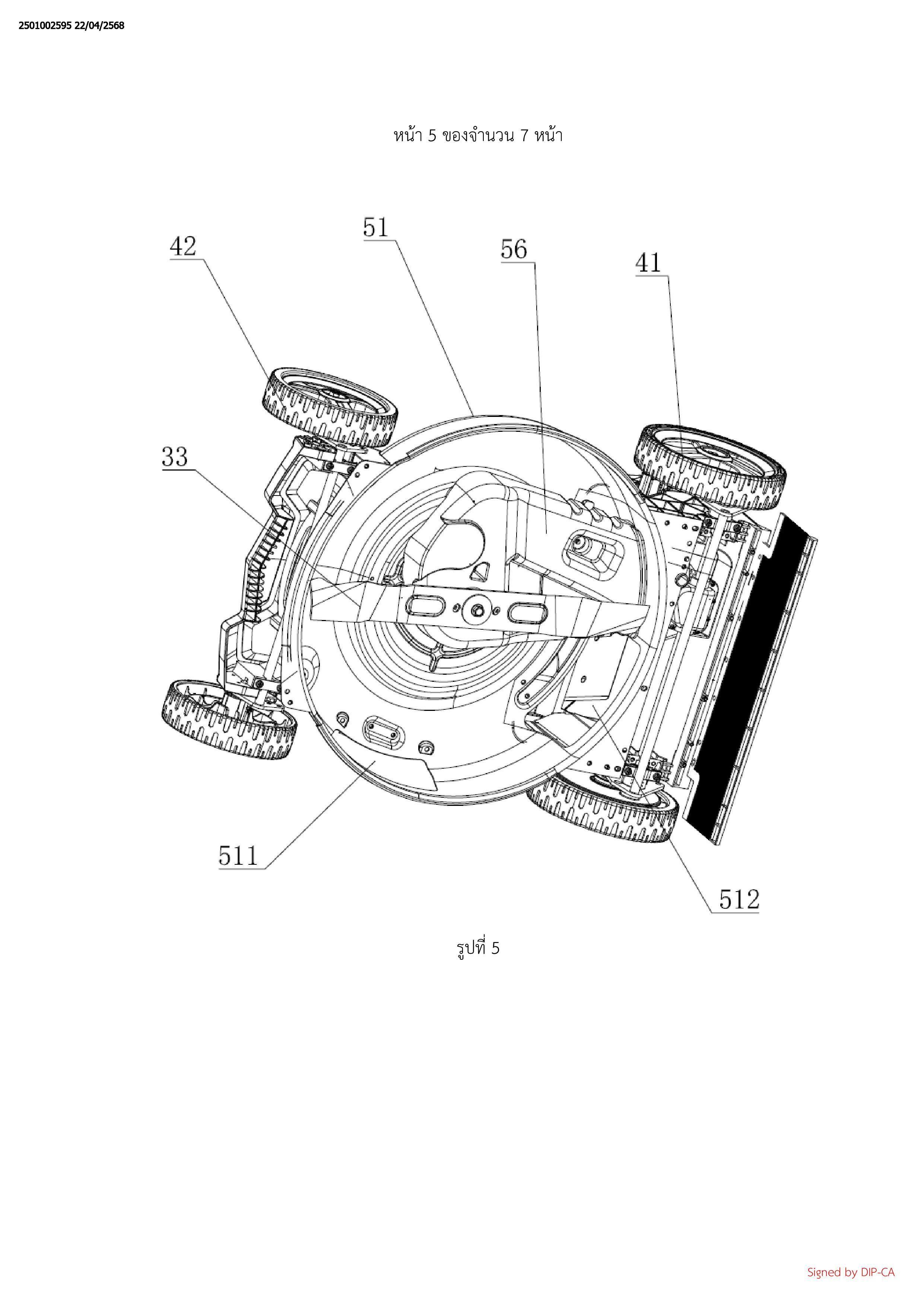 5. เครื่องตัดหญ้าขับเคลื่อนอัตโนมัติตามที่อ้างสิทธิในข้อถือสิทธิที่ 4 ที่ซึ่งตัวเรือนได้รับการติดบานพับพร้อมกับ