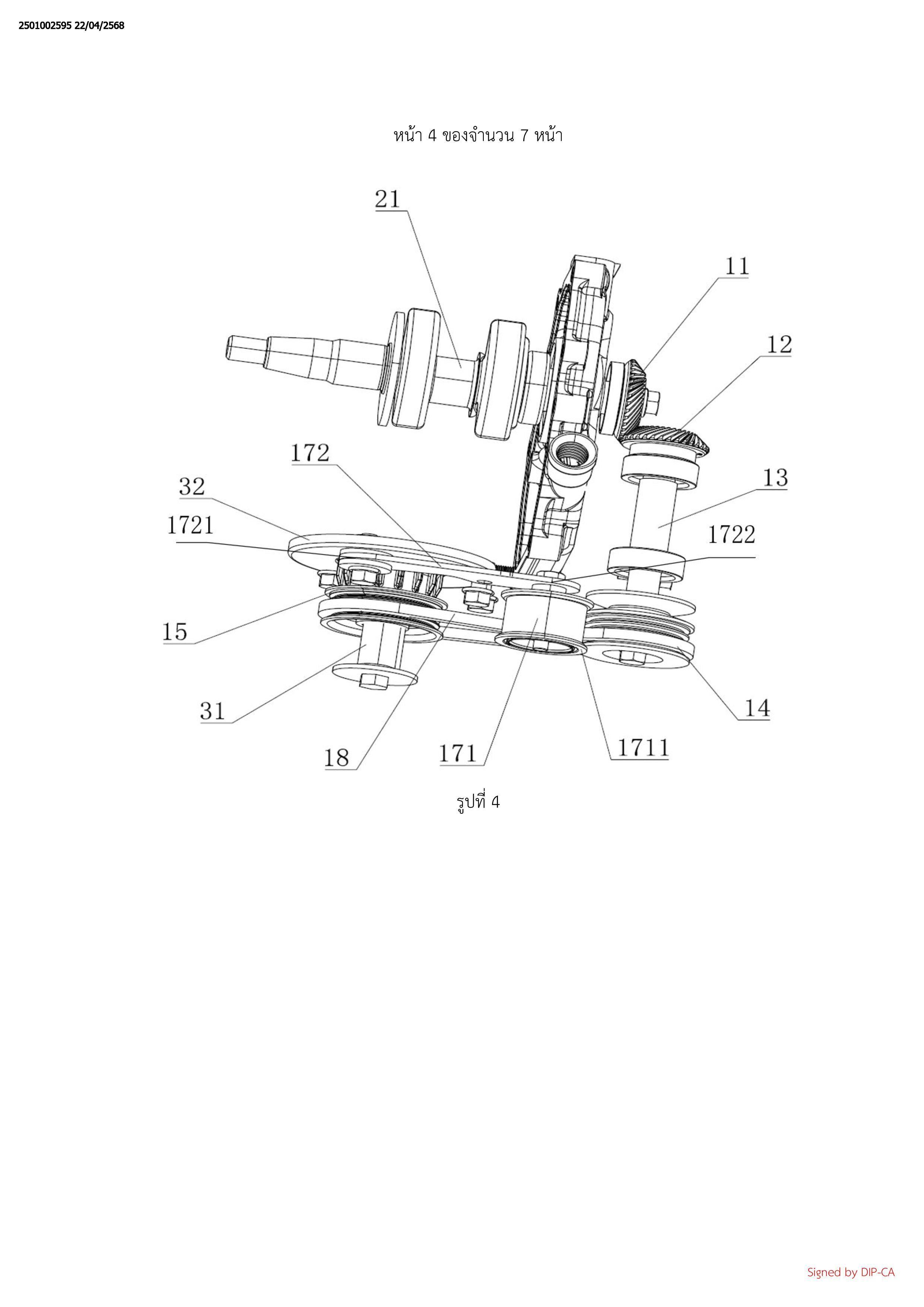 จากชิ้นส่วนขับเคลื่อนไปยังชุดลูกรอกสายพานผ่านเพลาส่งกำลัง