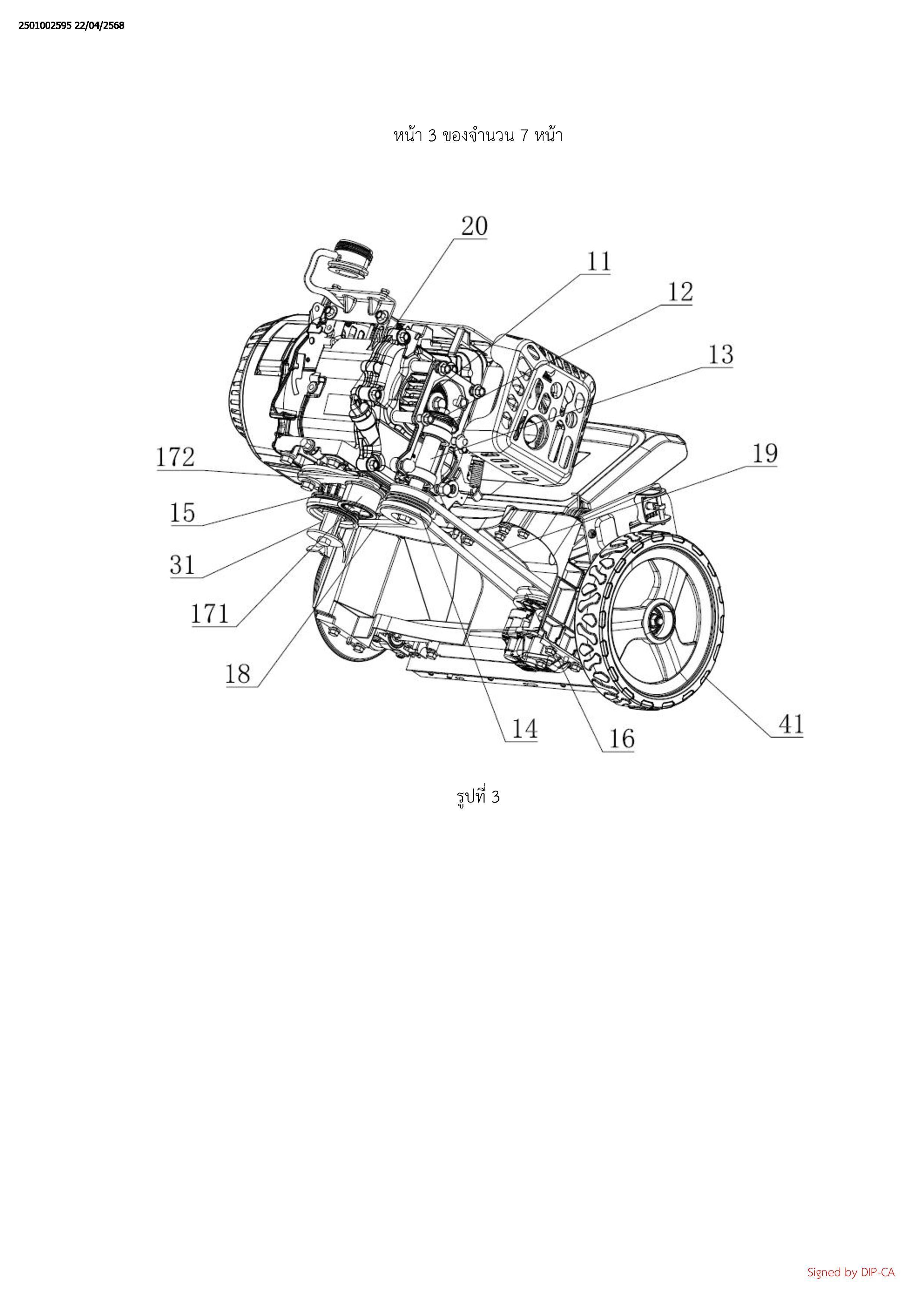 ขับเคลื่อนประกอบรวมด้วย: เพลากำลังขาออก และกลไกส่งกำลังประกอบรวมด้วย: ชุดเฟืองและชุดลูกรอกสายพาน