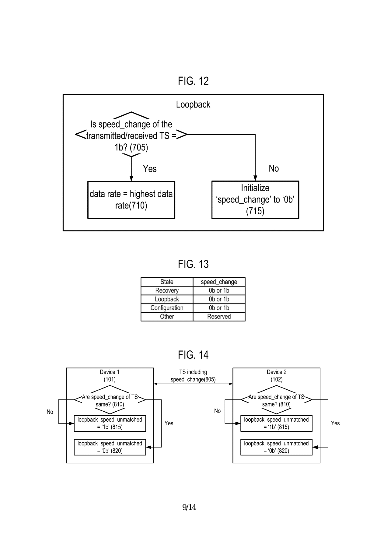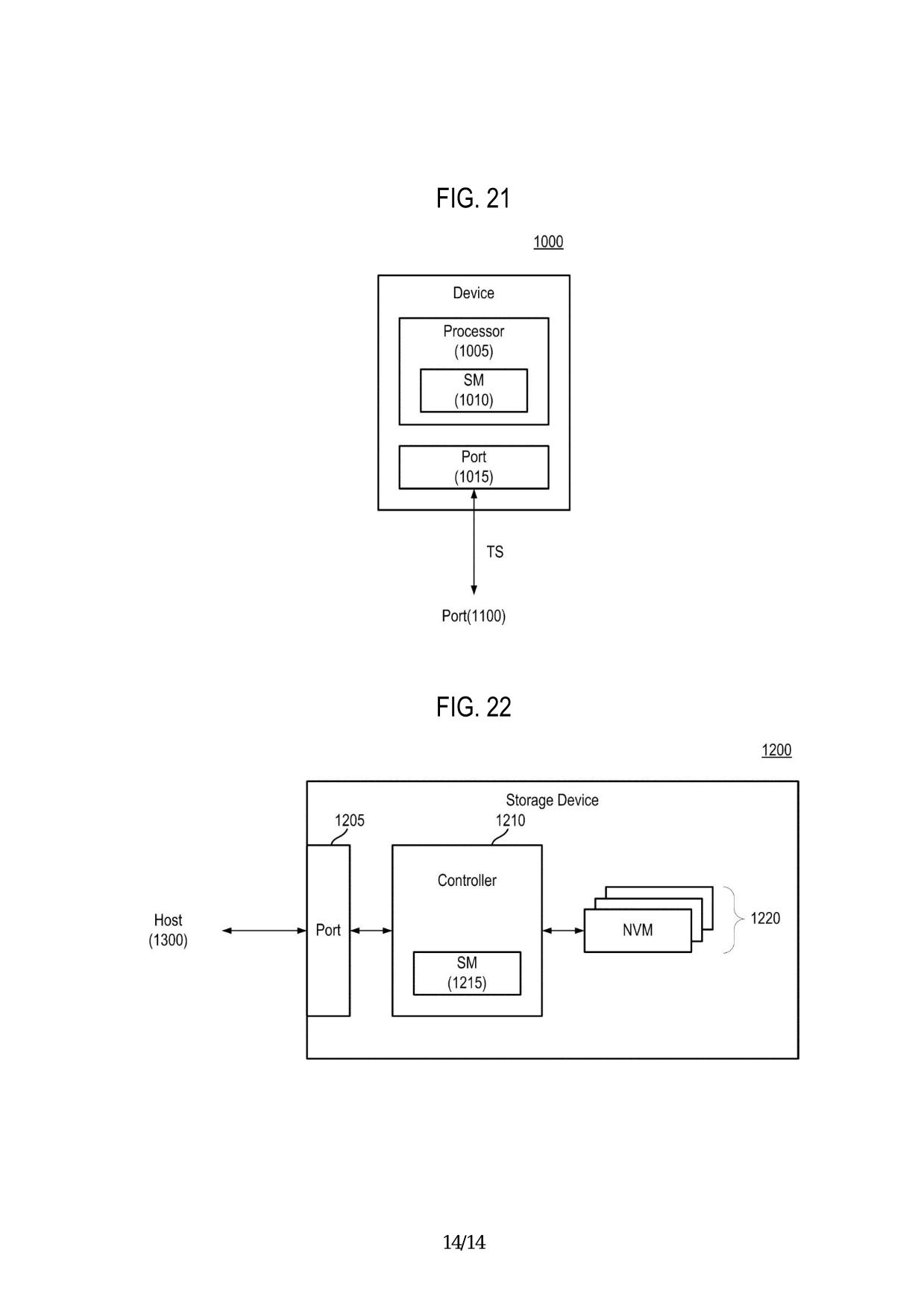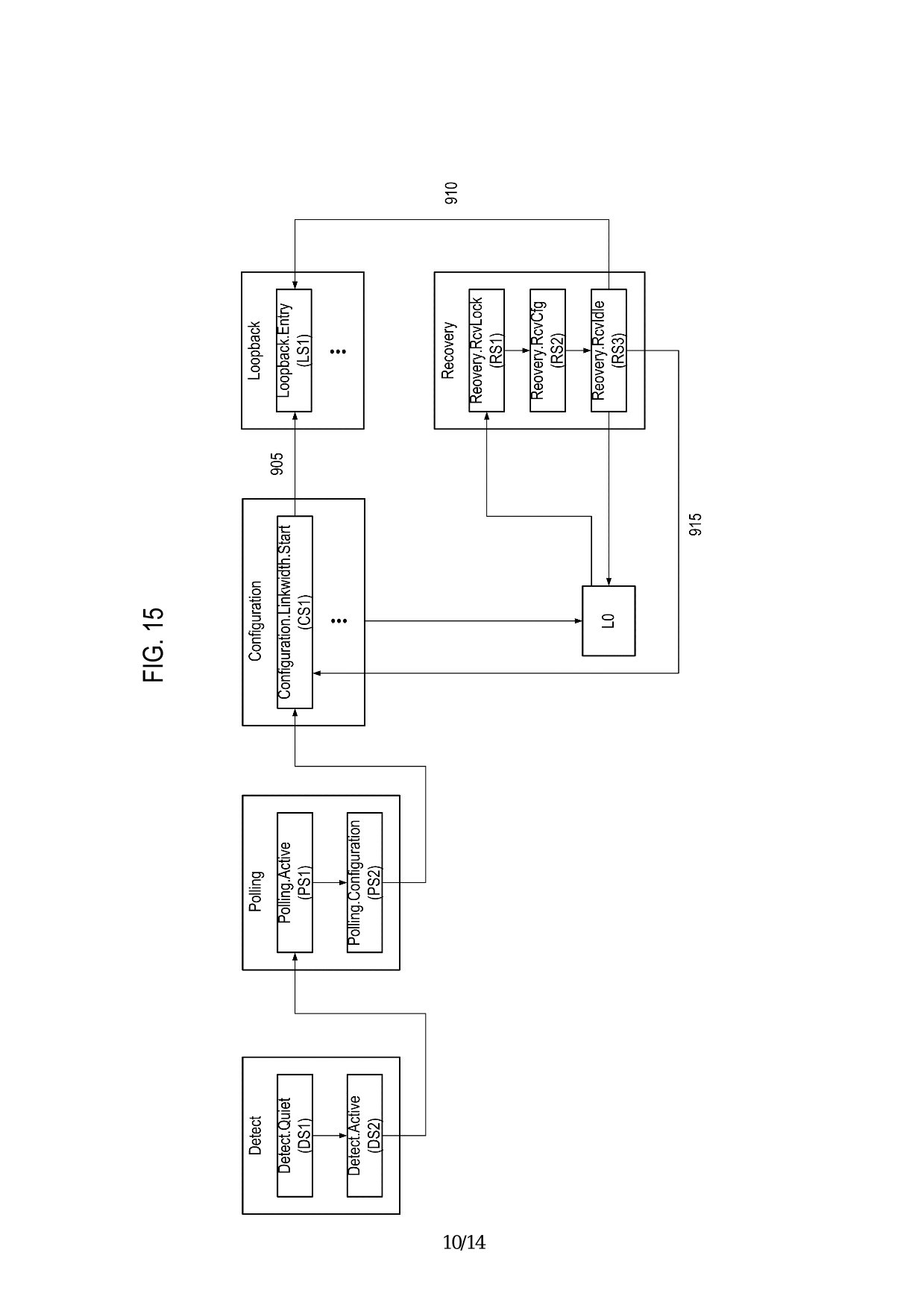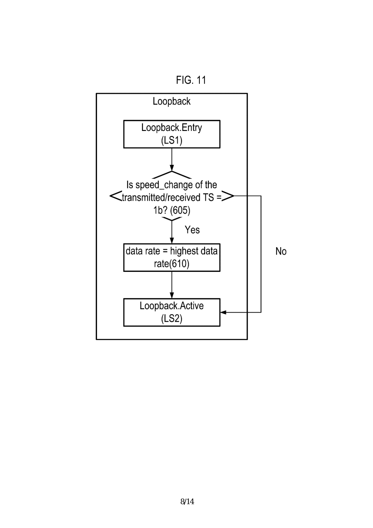 (EN) ABSTRACT A device includes a port connected to a link including one or more lanes to support communication between the device and another device; and a controller that controls the link based on a link training and status state machine (LTSSM). The port may receive two received sequences, each defined as a training sequence, through the link in a recovery state included in the LTSSM. The training sequence may include a first symbol, including a lane number or a special symbol, and a second symbol including a loopback bit. The controller may transition from the recovery state to a loopback state included in the LTSSM, based on the first symbol including the lane number and the loopback bit being set to an active logic state, for both of the two received sequences. FIG. 10 42