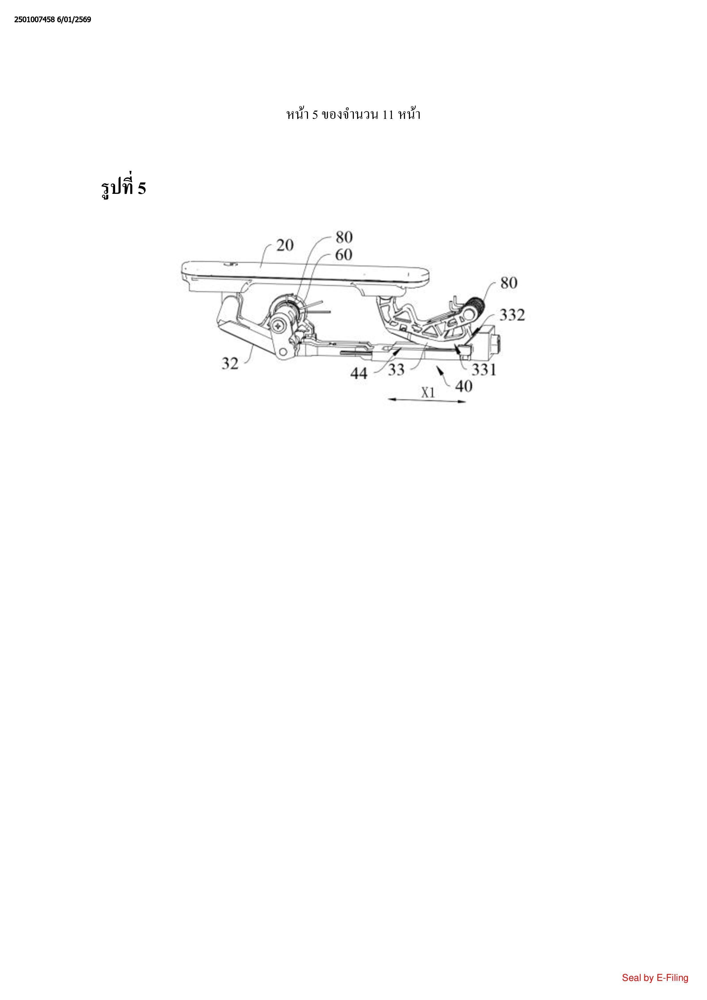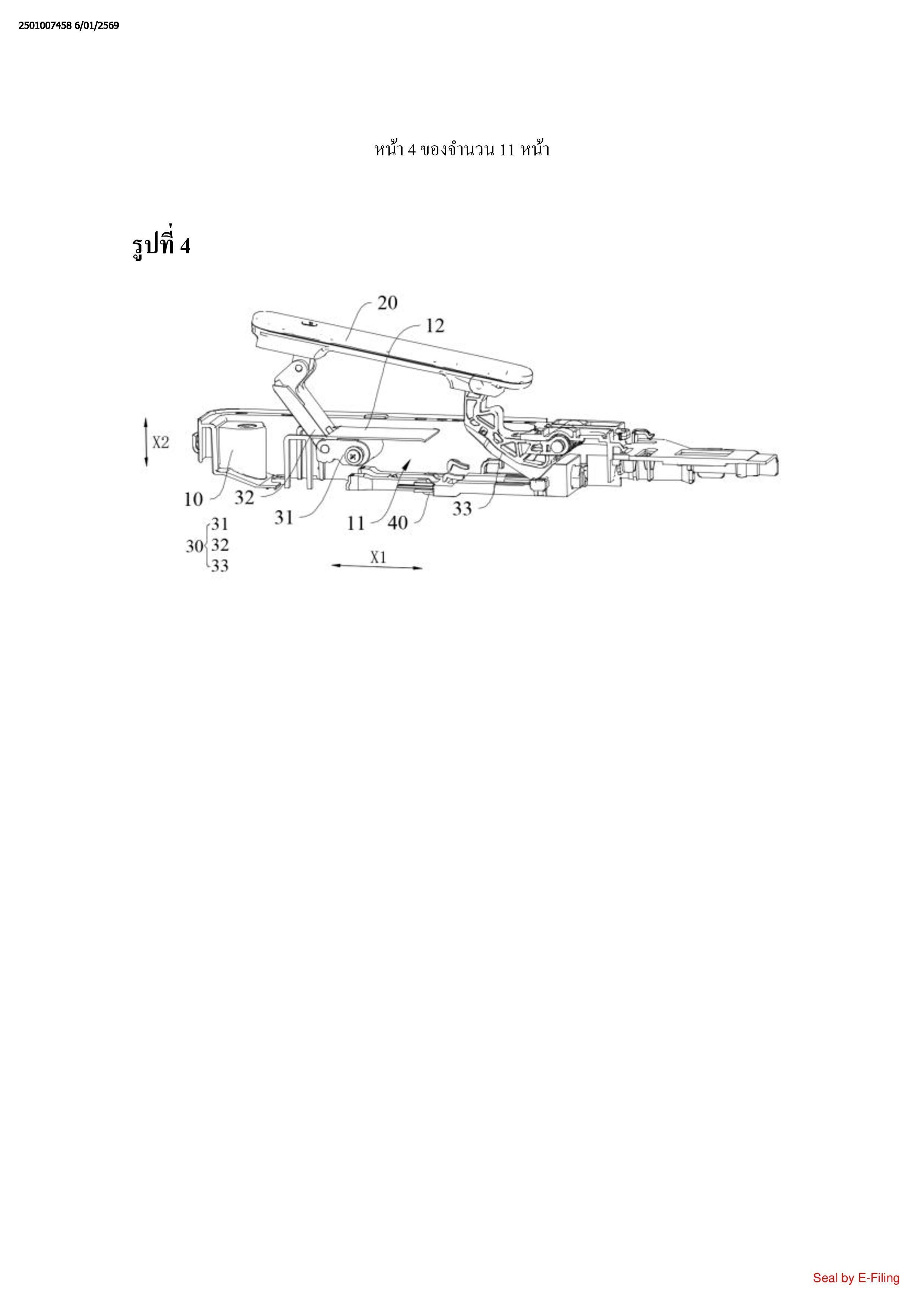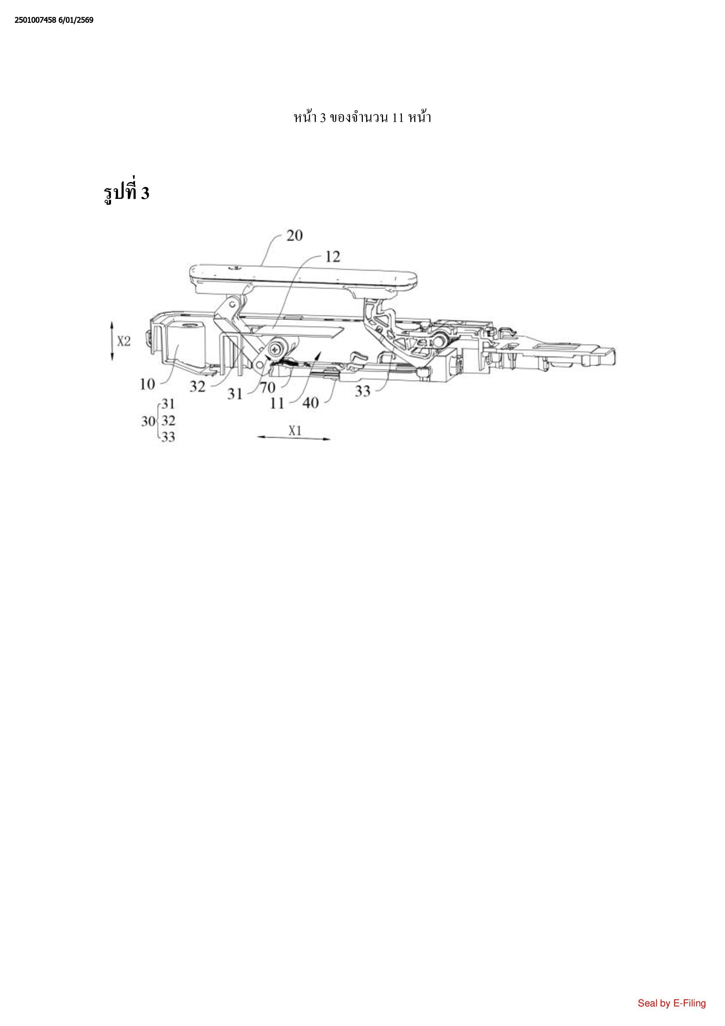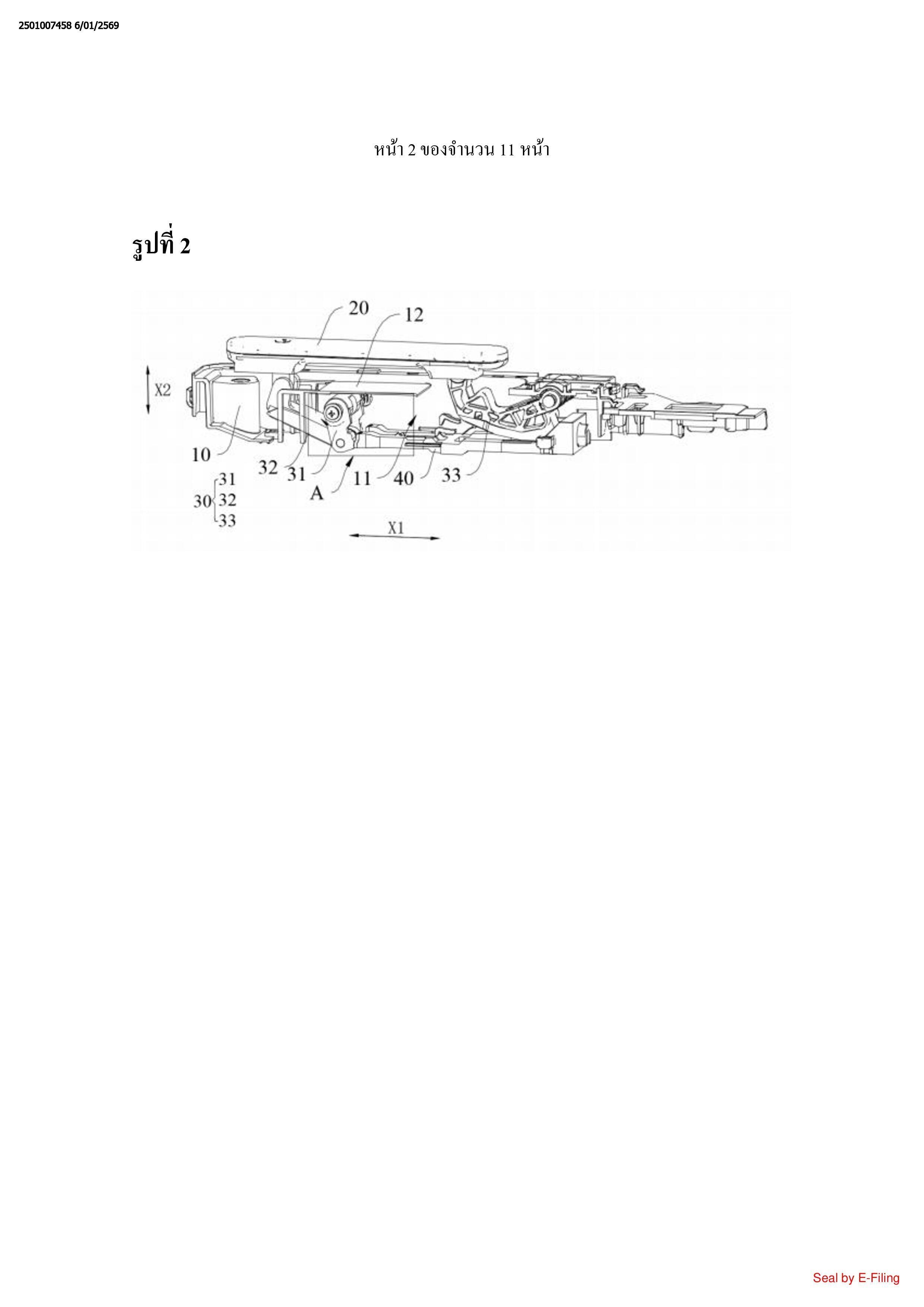 หนึ่ง (X1), ส่วนจำกัดตั้งอยู่ระหว่างที่จับ (20) และชุดประกอบก้านผลัก (40) ในทิศทางที่สอง (X2),