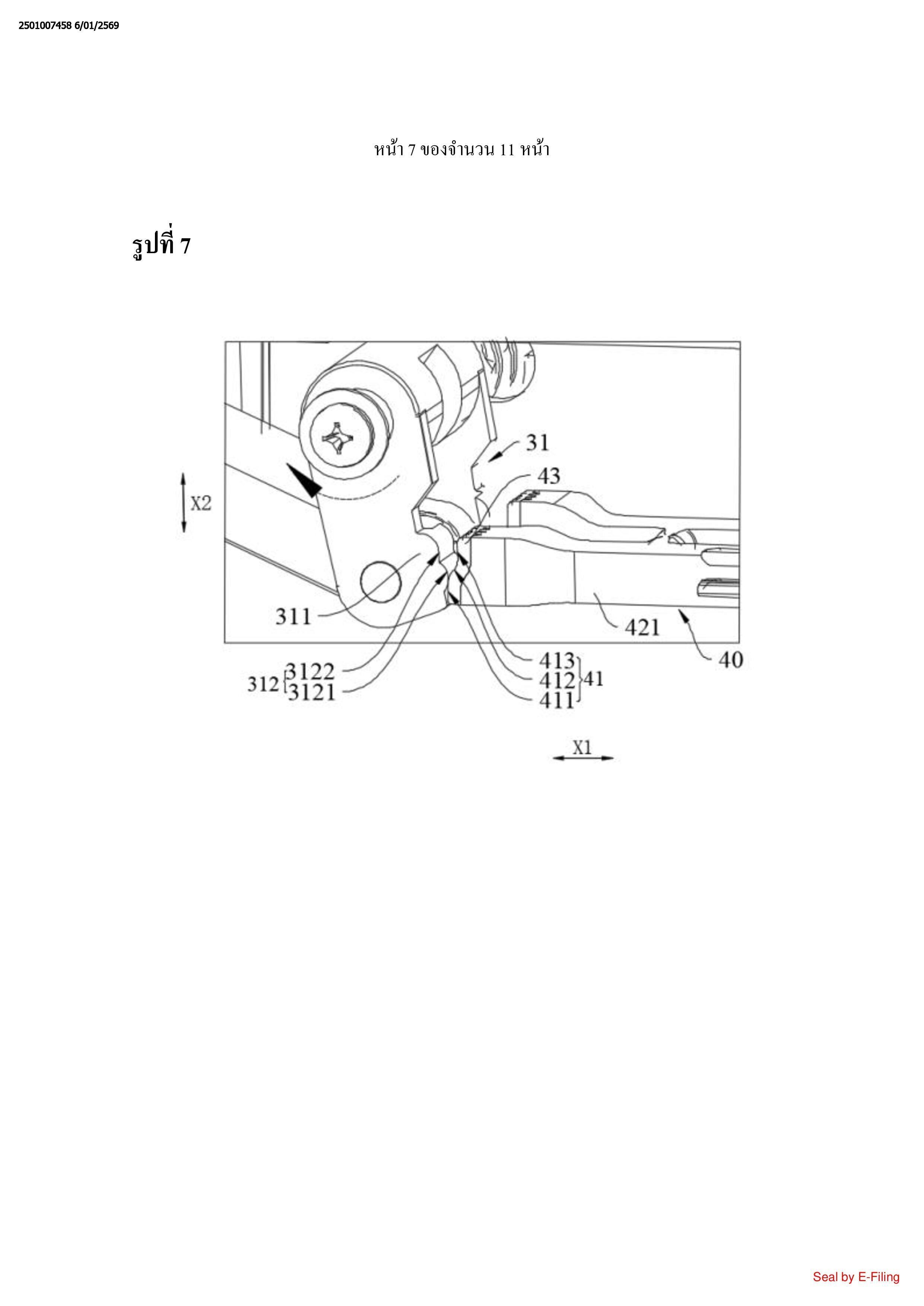 หนึ่ง (X1), และส่วนย่อยระนาบที่หนึ่ง (411) อยู่ที่ฝั่ง, ที่ใกล้กับตัวเชื่อมต่อ (31) ที่สุด, ของส่วนย่อย