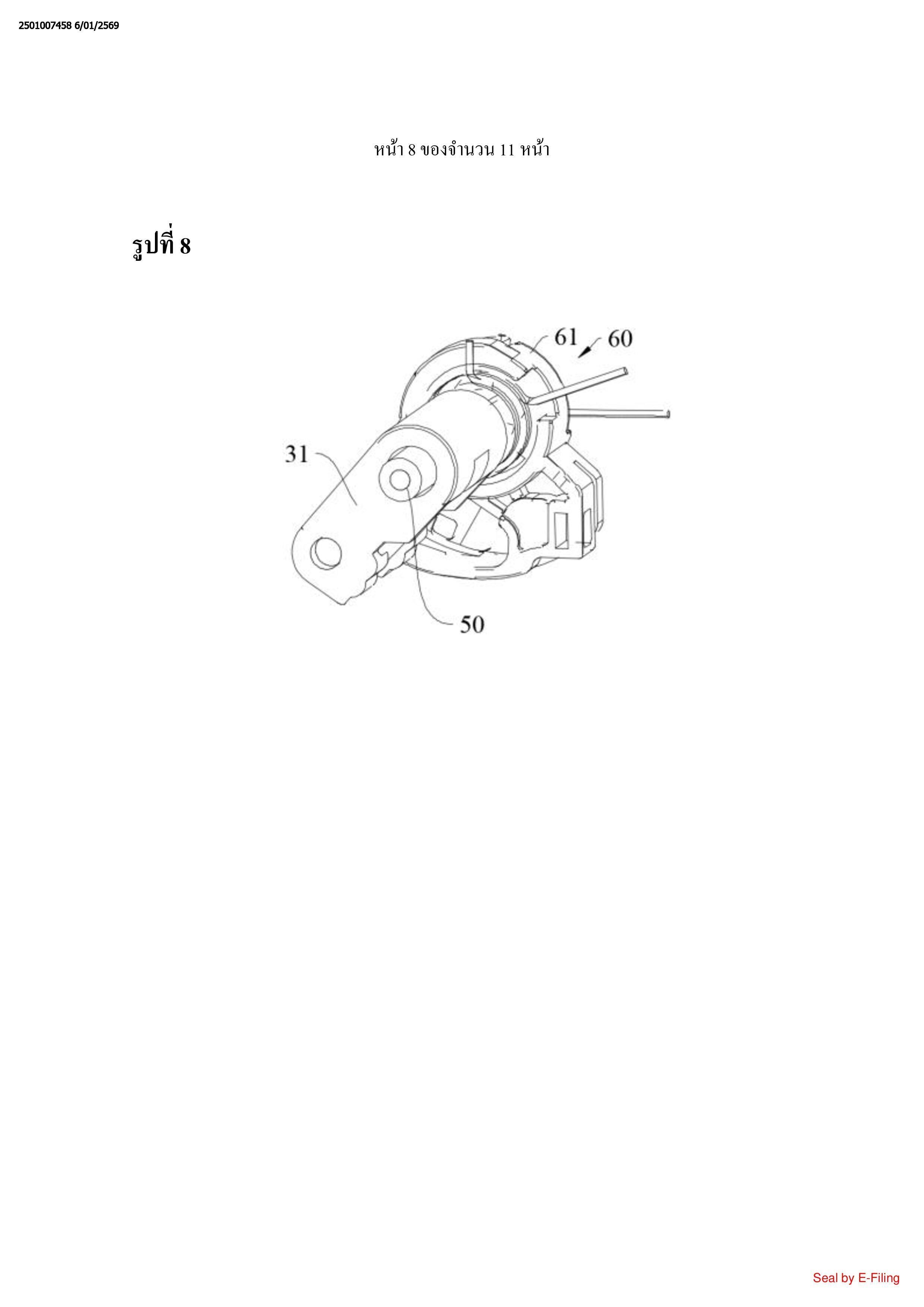 ชิ้นประกอบแขนเหวี่ยง (30) ซึ่งประกอบรวมด้วยตัวเชื่อมต่อ (31), แขนเหวี่ยงที่หนึ่ง (32),