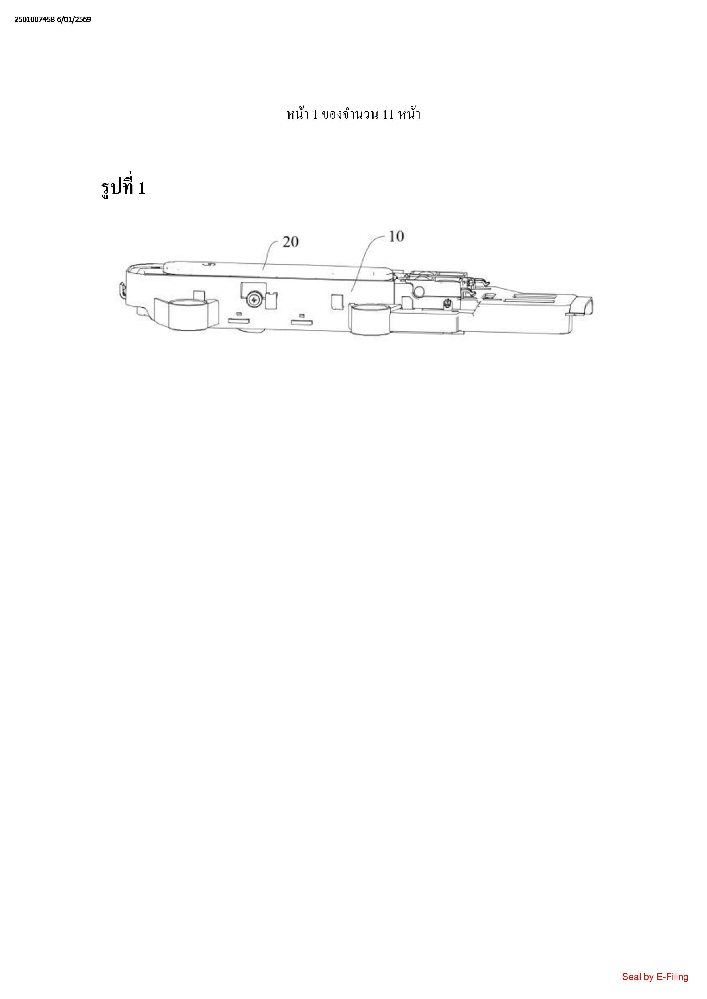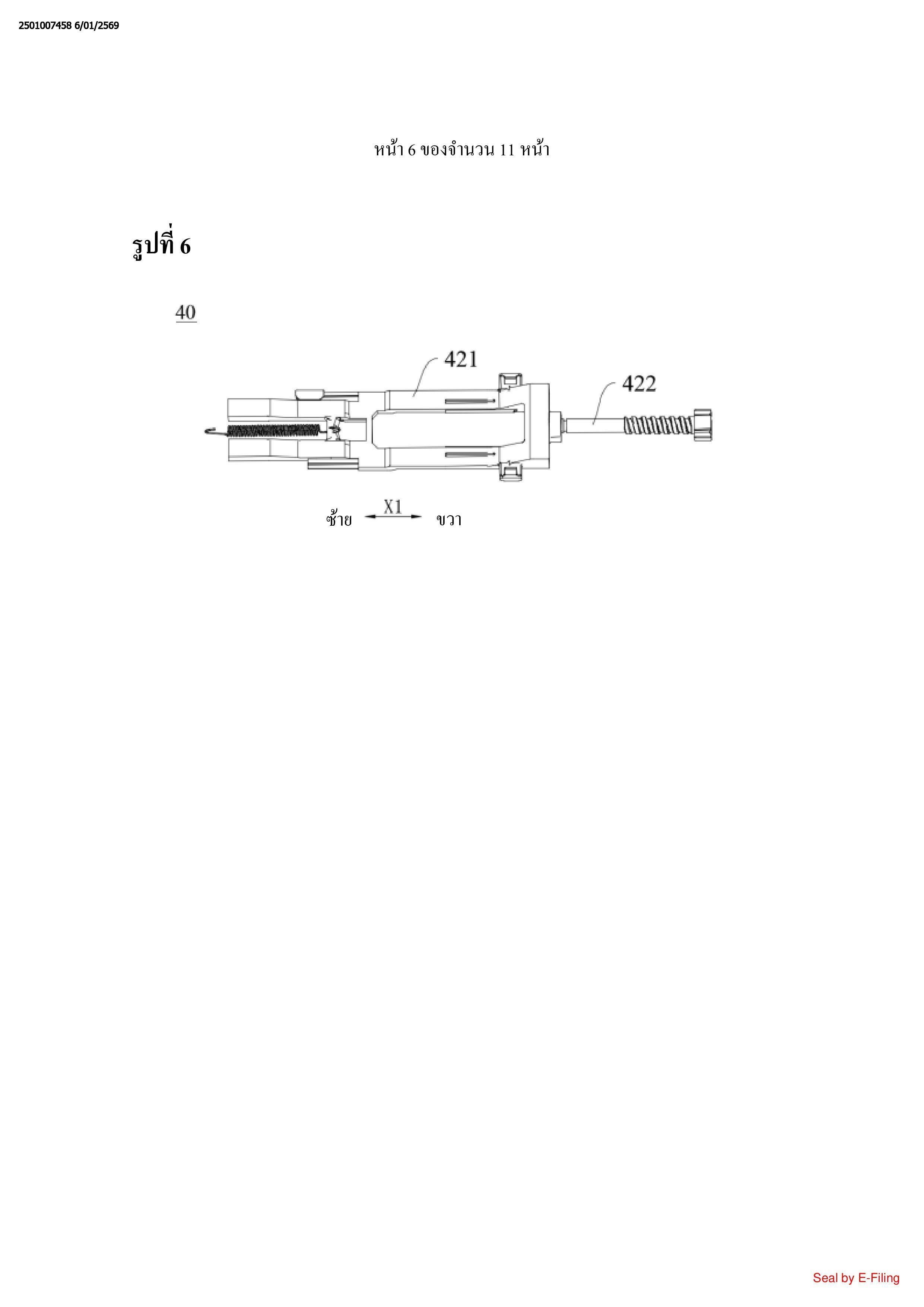 ชุดประกอบก้านผลัก (40) ที่ตั้งอยู่ที่ฝั่งของที่จับ (20) ที่เป็นฝั่งเดียวกันกับชิ้นประกอบแขน